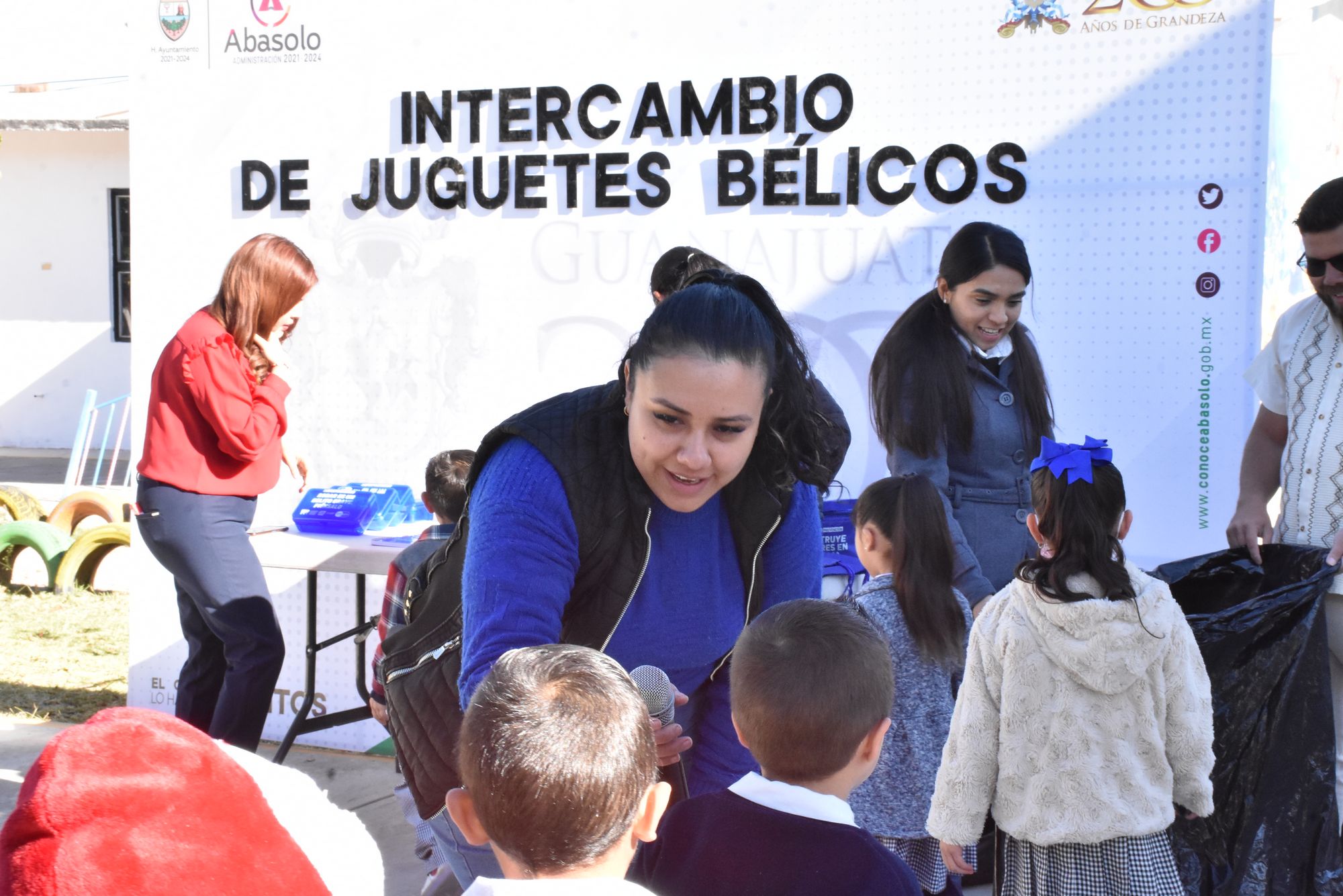 Abasolo, Gto. 22 de febrero de 2024.- La Coordinación de Prevención de la Dirección de Seguridad Pública del Municipio de Abasolo, a cargo de María de Jesús Morales Rodríguez, en conjunto con la Secretaría de Seguridad Pública, representada por Ana Luisa Castillo Moreno, llevaron a cabo un evento de intercambio de juguetes bélicos en el Jardín de Niños José Vasconcelos ubicado en la Colonia El Saucillo.