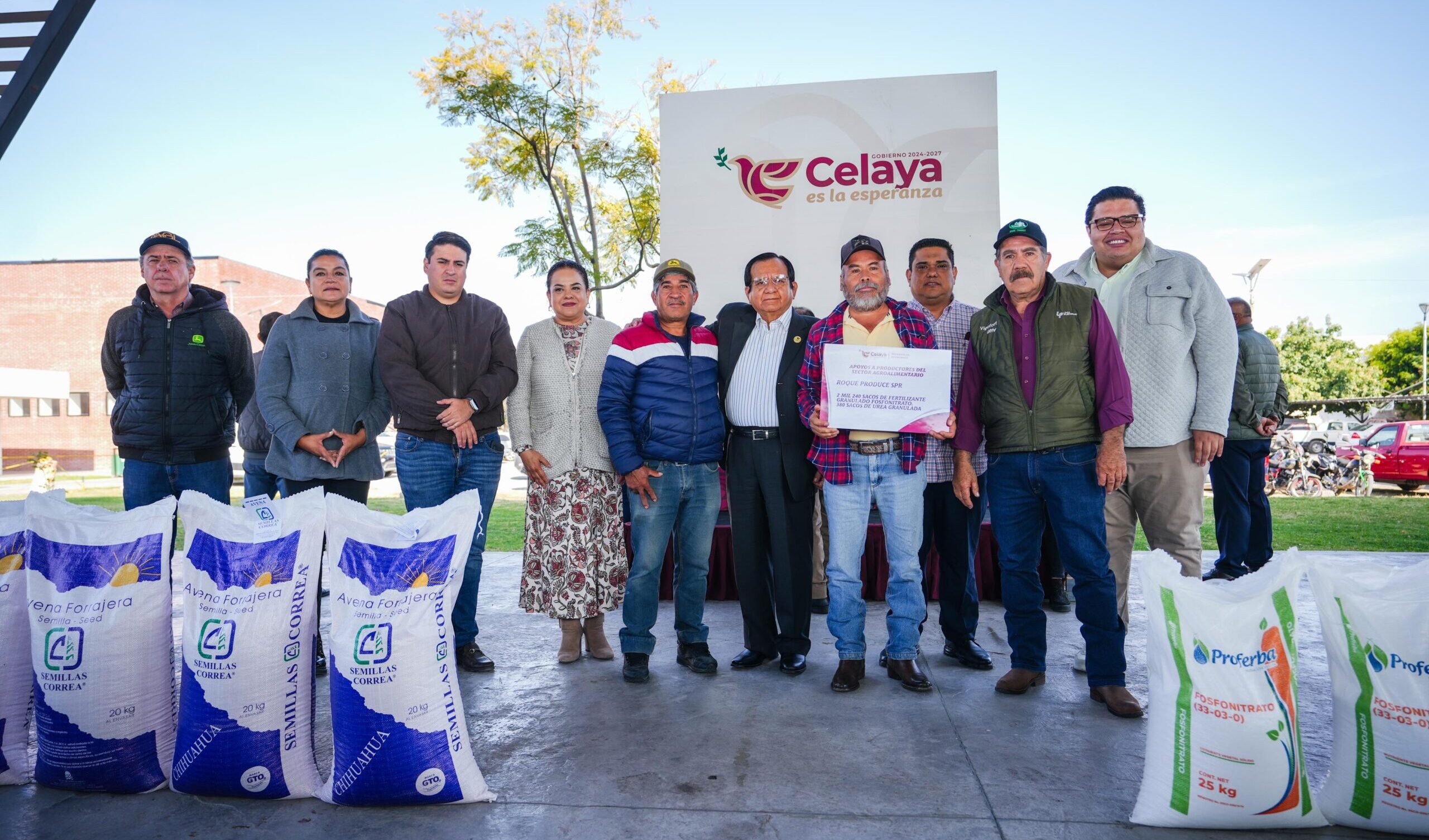 En la entrega de apoyos al sector agroalimentario participaron Pedro Loza, presidente de la Asociación Ganadera de Celaya, Rafael Ortega de la asociación Roque Produce; la directora de Desarrollo Económico, Analy Rocha, directores del gabinete municipal, representantes de FIRA y de la caja Apaseo el Alto, además de los productores beneficiados con el apoyo.