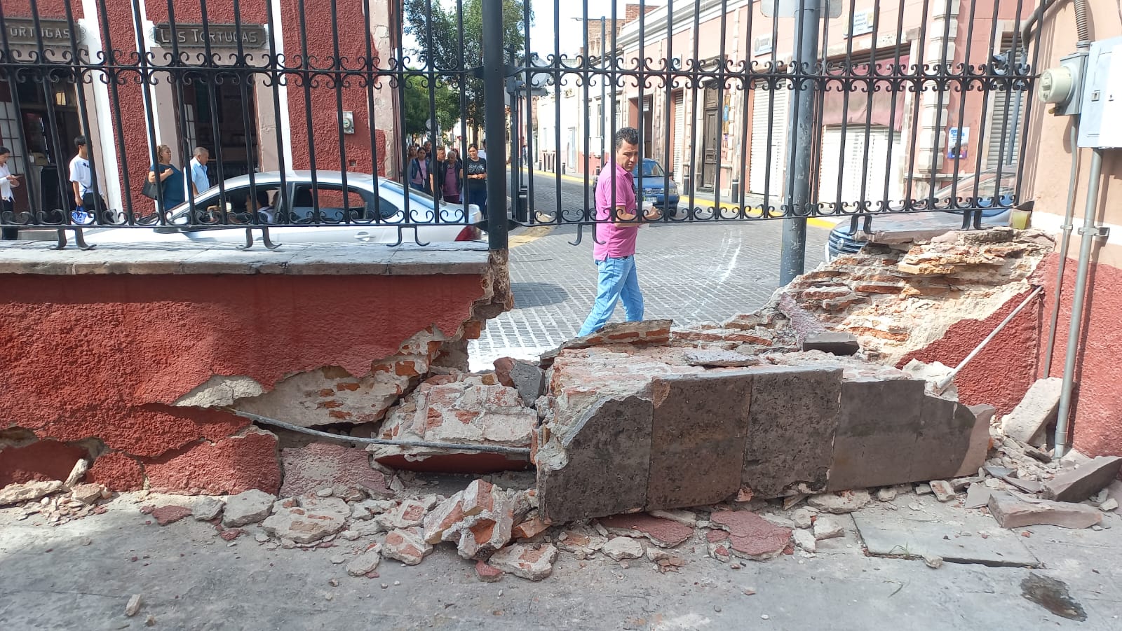 Celaya, Gto., a 30 de septiembre del 2025. La reparación del muro derribado del templo de catedral en un choque automovilístico sigue pendiente ya que se requiere de un dictamen del Instituto Nacional de Antropología e Historia (INAH) para la intervención y el de la Dirección de Tránsito y Policía Vial, con el fin de complementar el expediente y establecer responsabilidades.