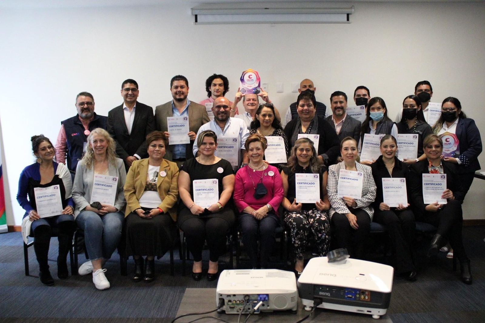 Luego de la presentación de dos videos y del uso correcto del QR se entregaron certificados a las siguientes empresas: Pozolería el Grito, La Burger Celaya, Tradicional de Yucatan, Sonora´s Meat, Maricos los Esteros, El Mercadito Celaya, Restaurante el Quinto Toro, Hotel Hampton Inn, Casa Inn Veleros, Casa Inn Galerías, Fiesta Inn Celaya, Hotel Double Tree by Hilton, Hotel City Express Parque Celaya, Hotel Candlewood Celaya, Hotel HC Celaya, Hotel RJ, Hotel Mary, Motel Memora Celaya, Hotel Casa Blanca, Cabañas los Pocitos, Cajetas la Vencedora, Cajeta la Tradicional, Cajeta la Delicia, Cajetas la Fina, Cajeta la Casera, Cajeta la Chivita Celayense, Cajetas la Reina, la Vulgata, Consejo Coordinador Empresarial, Hecho con Amor en México.