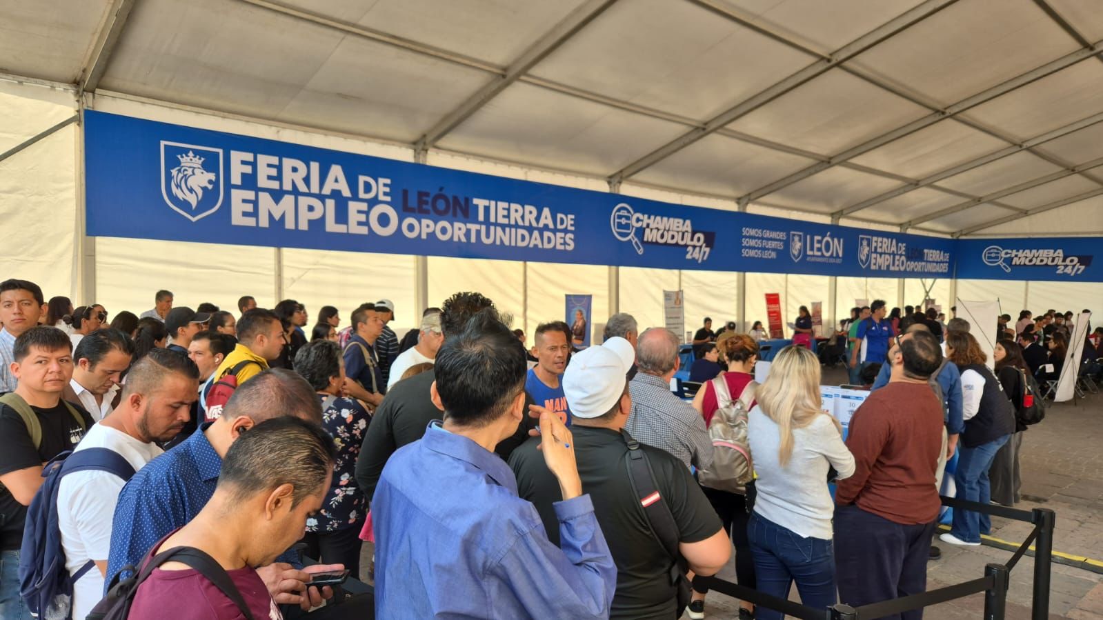 León, Gto., 28 mayo 2025.- Este martes se llevó a cabo la feria del empleo en la ciudad, justo frente a presidencia municipal.