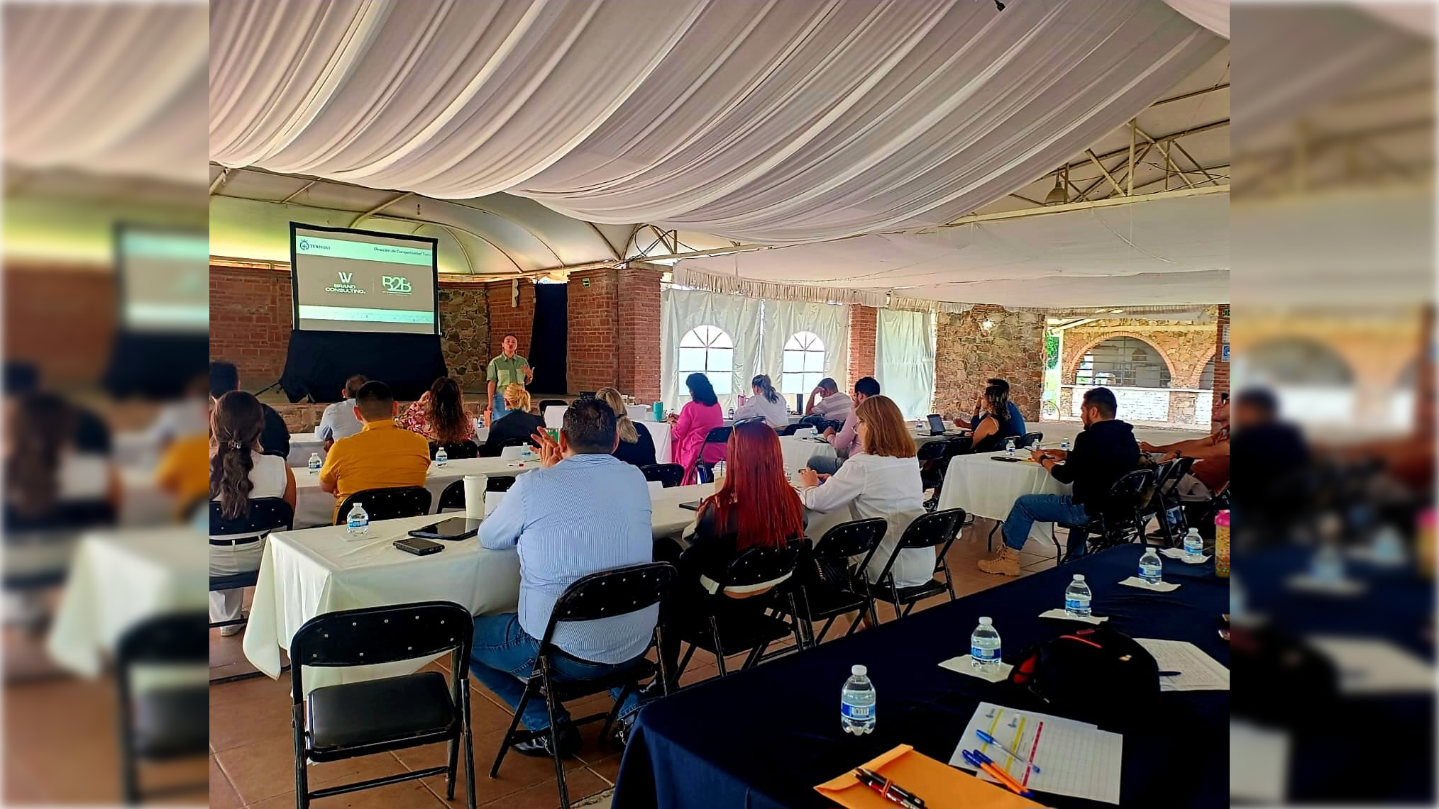 Silao, 18 de julio de 2025.- Emprendedores de Silao iniciaron la capacitación “Redes sociales para empresas turísticas” que ofrecen la Secretaría de Turismo e Identidad y la Dirección General de Desarrollo Económico y Turismo Municipal, en la ex hacienda Franco de Benavente.