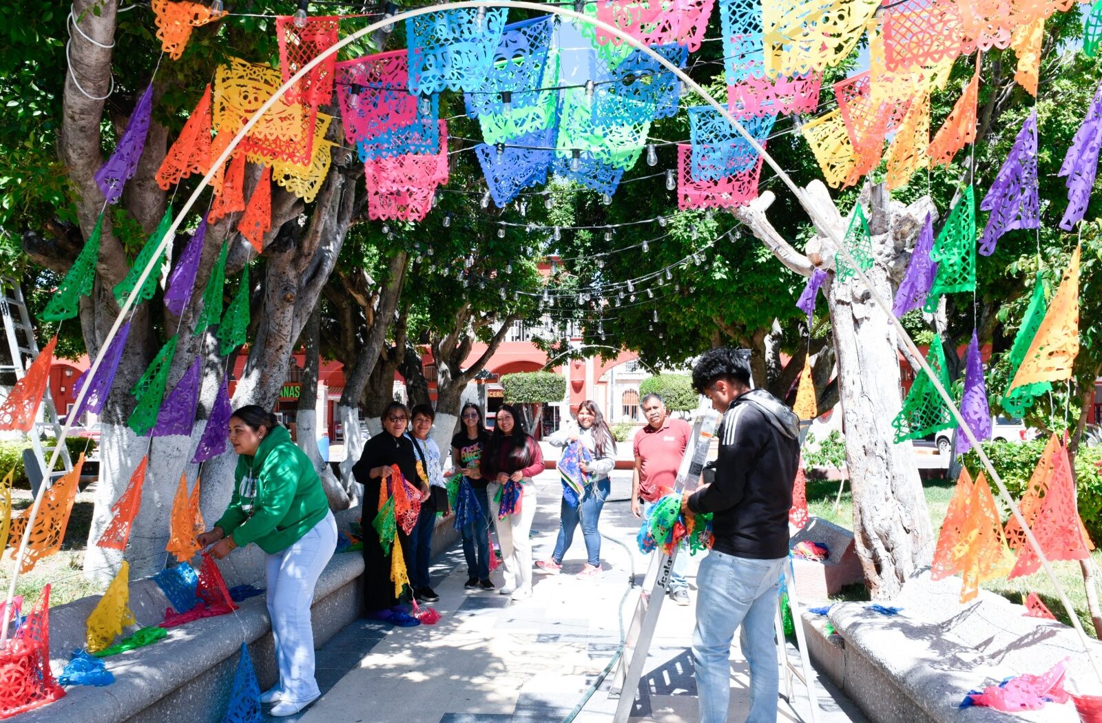 Se inició la decoración del jardín principal a cargo de las diferentes dependencias de gobierno, que con dedicación han llenado de elementos artesanales este espacio público. También se anunció fecha para el Desfile de Catrinas, Catrines y Alebrijes.