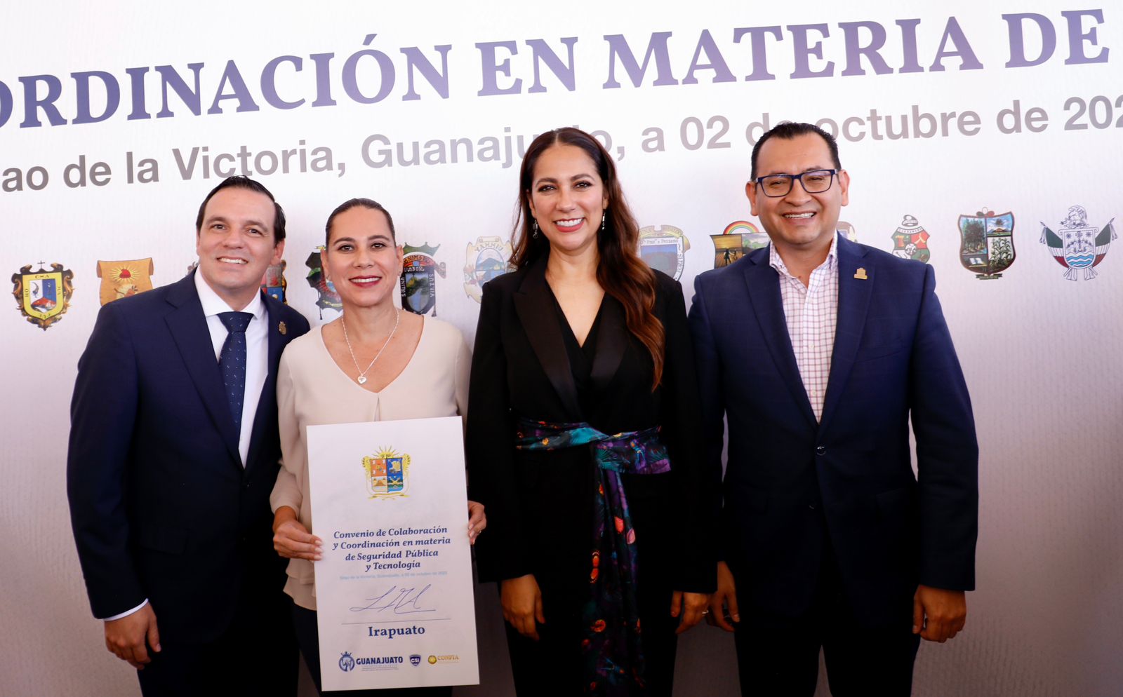 Guanajuato. 02 de octubre de 2025.- El Gobierno de Guanajuato, encabezado por la Gobernadora Libia Dennise García Muñoz Ledo, firmó el Convenio de Coordinación y Colaboración en materia de Seguridad Pública y Tecnología, con el que los 46 municipios quedaron conectados al Sistema Estatal de Vigilancia. En el evento participaron el Secretario de Seguridad y Paz, Juan Mauro González Martínez, y el Secretario de Gobierno, Jorge Daniel Jiménez Lona, además de presidentes municipales y representantes de todo el estado.
