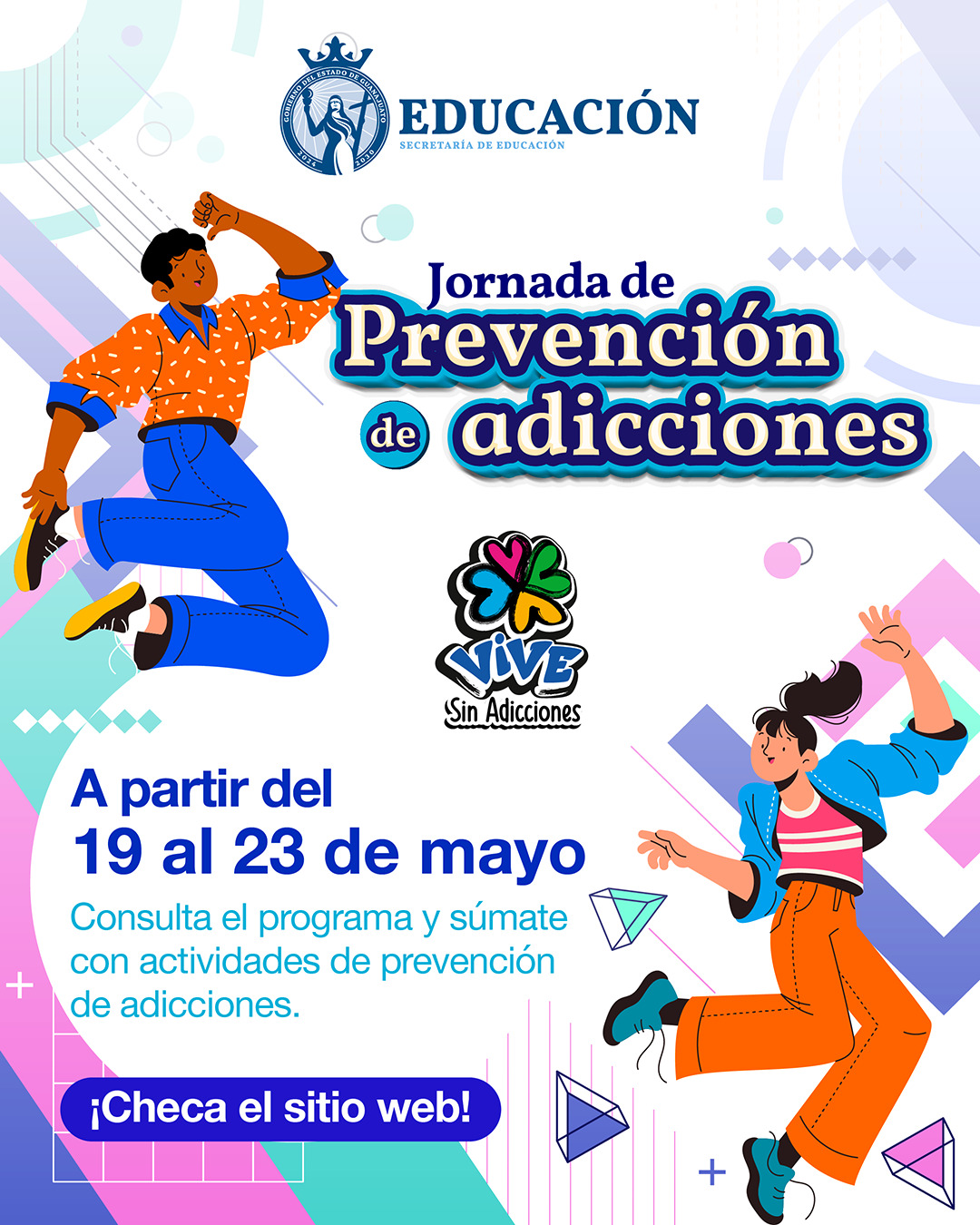 Del 19 al 23 de mayo se realiza la Jornada de Prevención de Adicciones con actividades y conferencias para fortalecer entornos saludables y prevenir el consumo de drogas en niñas, niños y adolescentes.