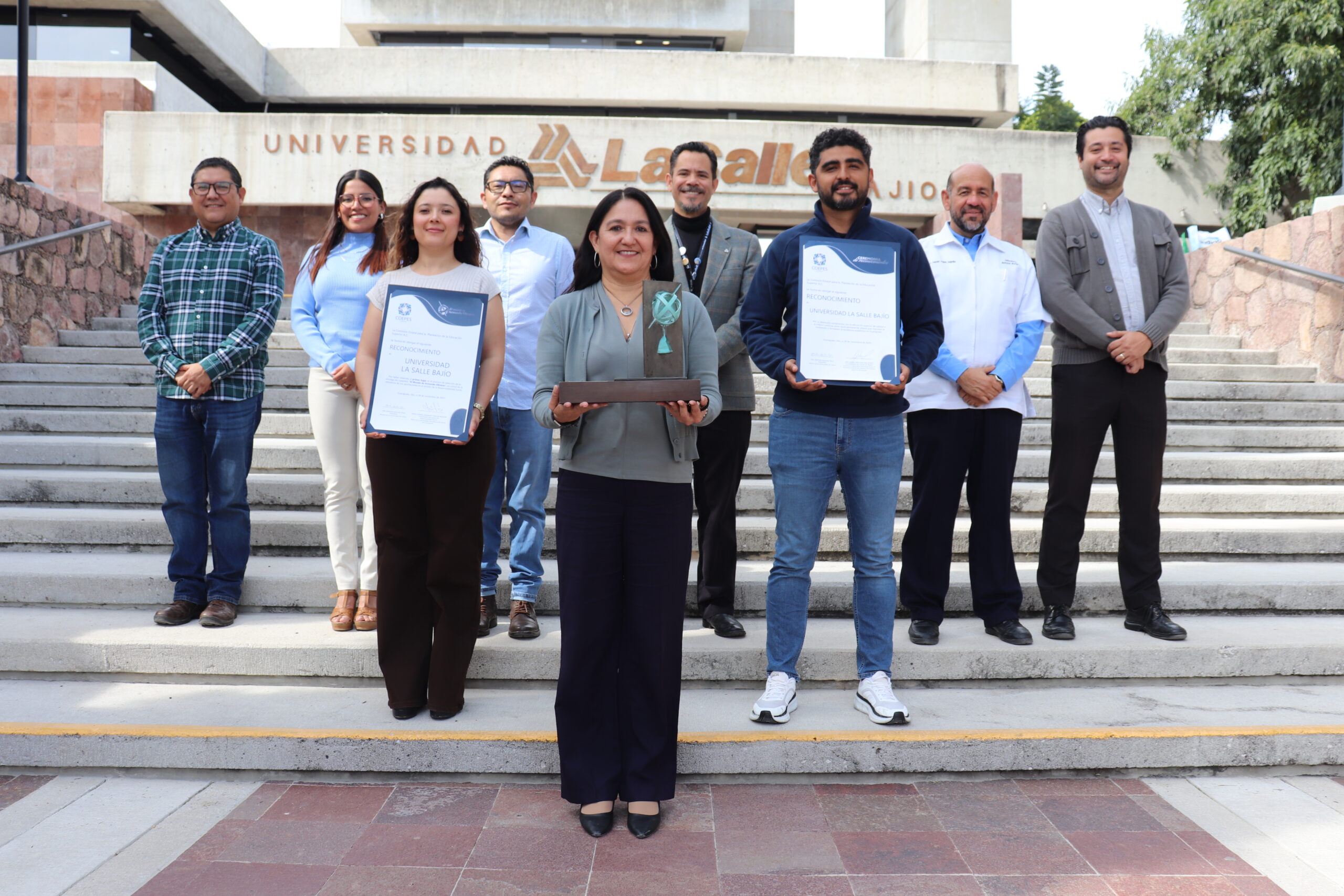 Guanajuato. 10 de diciembre de 2025.– El Consejo para la Evaluación de la Educación Superior (COEPES) otorgó a la Universidad La Salle Bajío el galardón El Mundo de Armando Olivares 2025, por la solidez e impacto de su Plan de Responsabilidad Social Universitaria. La institución fue reconocida por integrar la responsabilidad social como eje rector de sus procesos académicos y organizacionales. COEPES resaltó la visión humanista y sostenible que orienta el modelo educativo lasallista.