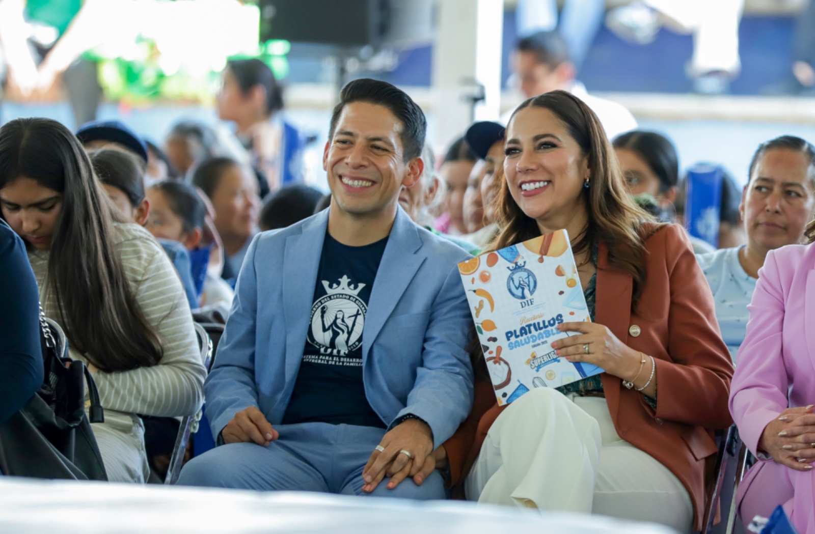 Guanajuato. 16 de octubre de 2025.- La Gobernadora de Guanajuato, Libia Dennise García Muñoz Ledo, junto al Presidente del Consejo Consultivo del Sistema DIF Estatal, Juan Carlos Montesinos Carranza, encabezó la premiación de los concursos Platillos Saludables 2025 y Sembrando Conocimientos, cultivando mi futuro. A través de la estrategia Superliga de la Salud, el Gobierno de la Gente promueve una alimentación sana, la convivencia familiar y la creatividad en la cocina.