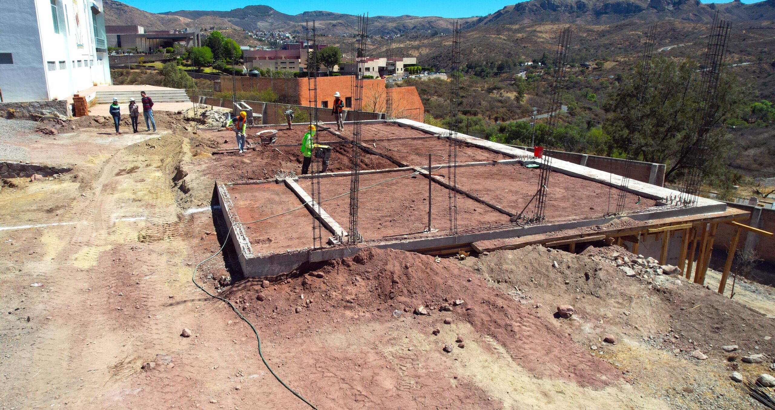 Guanajuato, Gto; a 27 de febrero de 2025.- A cinco semanas de haber iniciado los trabajos, la construcción de aulas en la Escuela Normal Superior Oficial de Guanajuato, presenta un avance físico del 21.7%