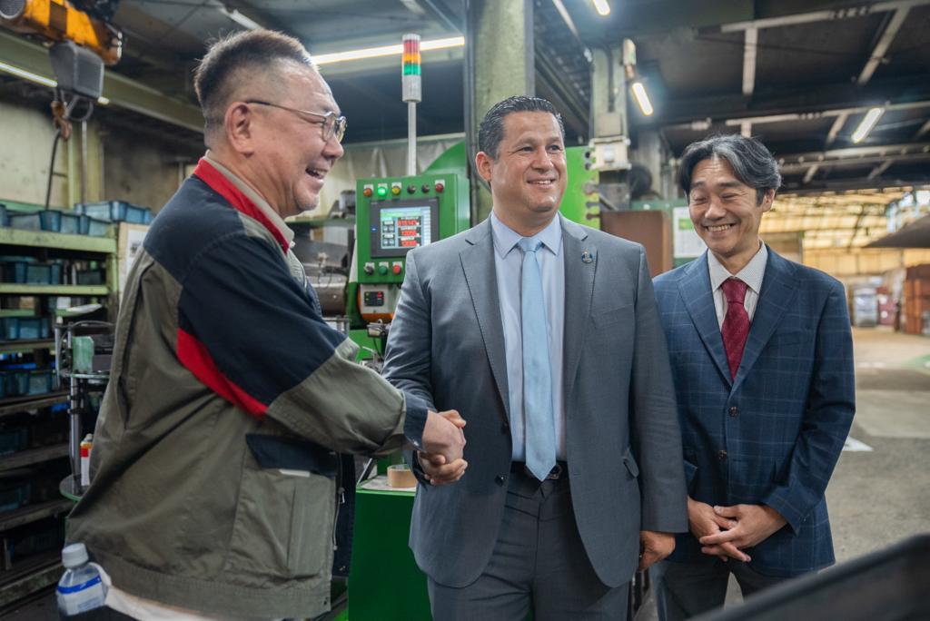 Osaka, Japón, 16 de junio del 2023.- Diego Sinhue Rodríguez Vallejo, gobernador de Guanajuato continúa con su gira de atracción de inversiones por Japón, donde la empresa Okita Iron Works, ratificó su compromiso de invertir 40 millones de dólares y generar 200 nuevos empleos directos en Guanajuato.
