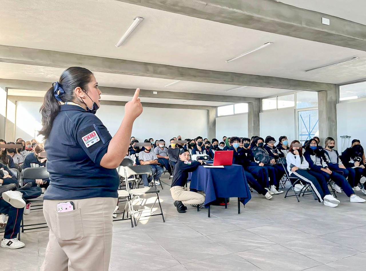 Durante estos días acudieron a la escuela Alfonso García Robles donde 100 alumnos de segundo y tercer grado de secundaria y personal administrativo recibieron la plática de uso y manejo del número telefónico 9-1-1, así como aspectos positivos y negativos de las redes sociales.