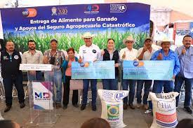 entregó cheques del Seguro Catastrófico y alimento porcino balanceado.