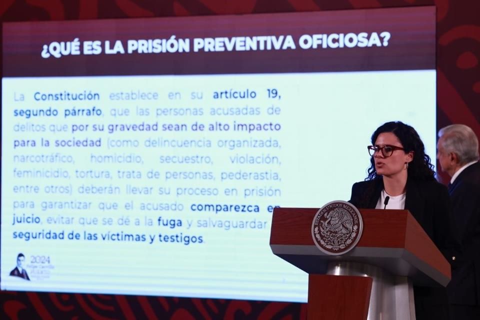La titular de Gobernación, advirtió de la intención de la Suprema Corte de Justicia de la Nación de eliminar la prisión preventiva de oficio, lo que según sus cifras conllevaría a la posible liberación de 68 mil delincuentes.