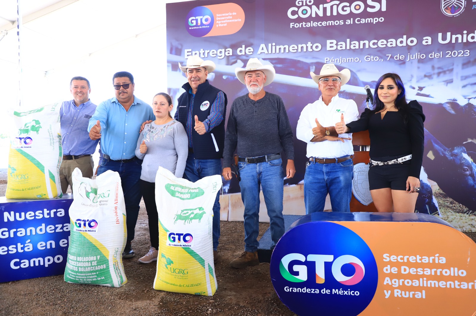 Pénjamo, Gto., 10 de julio del 2023.- En apoyo a las y los ganaderos de Pénjamo, este día la Secretaría de Desarrollo Agro alimentario y Rural del Estado entregó mil 700 bultos de alimento para ganado en el municipio de Pénjamo.