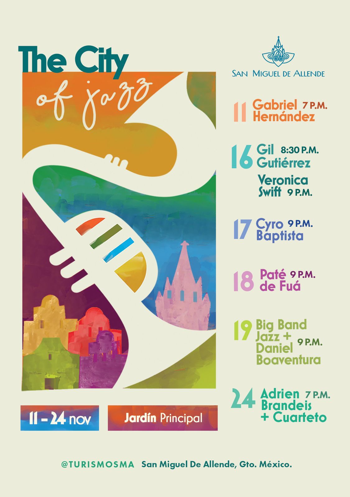 Al consolidar la estrategia de promoción turística marcada por el presidente municipal Mauricio Trejo, la dirección de Desarrollo Económico y Turismo presenta la segunda edición de «The City of Jazz» que, del 11 al 24 de noviembre, llenará las calles de música y talento con artistas de talla internacional.