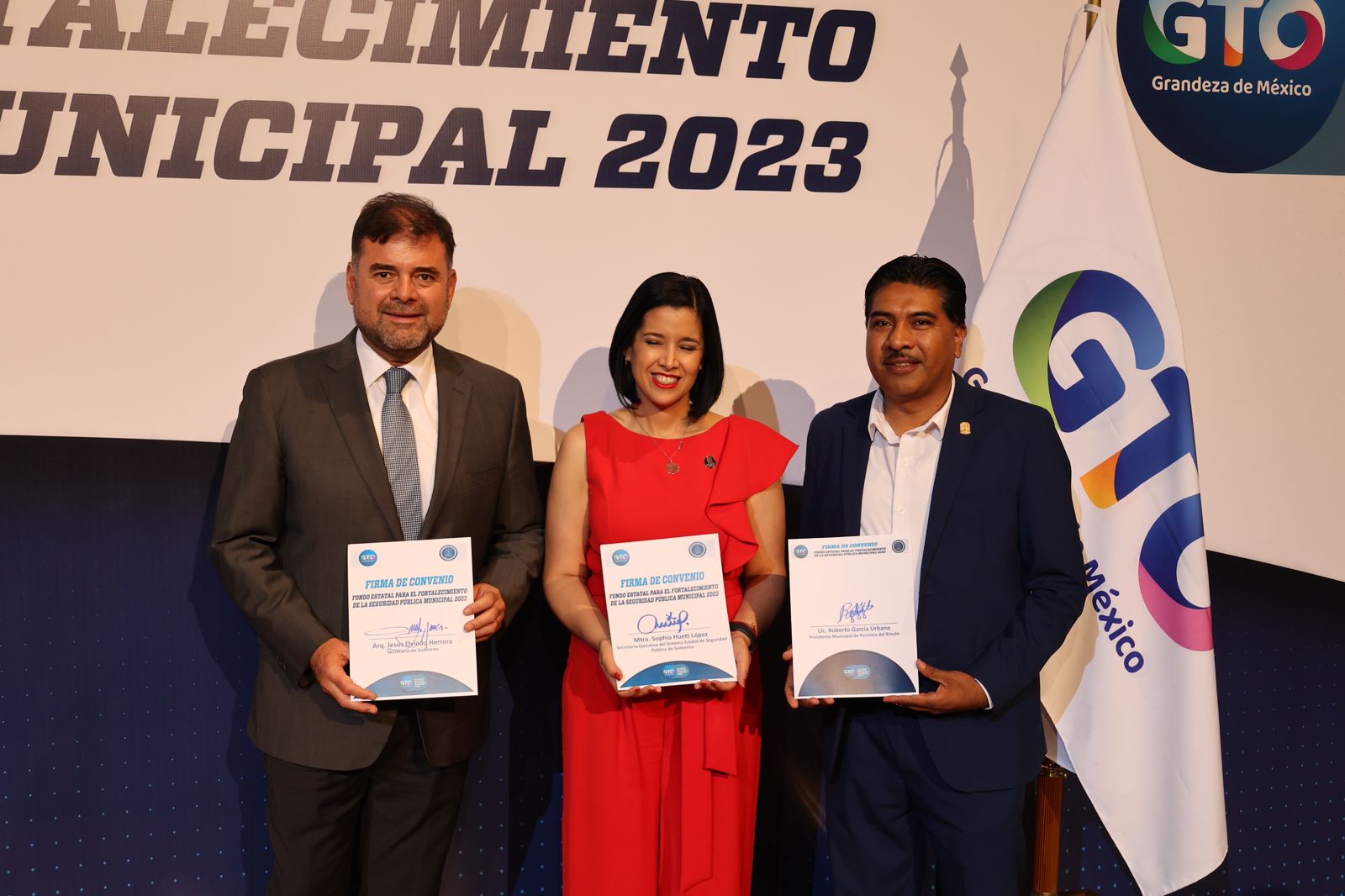 La firma estuvo presidida en la ciudad de León por el secretario de gobierno, Jesús Oviedo Herrera, así como Sophia Huett López, secretaria ejecutiva del Sistema Estatal de Seguridad Pública. El presidente municipal confirmó que cuando se multiplica la capacidad de atención y se unen objetivos, a Purísima del Rincón se le da la oportunidad de contar con un mejor esquema de profesionalización.