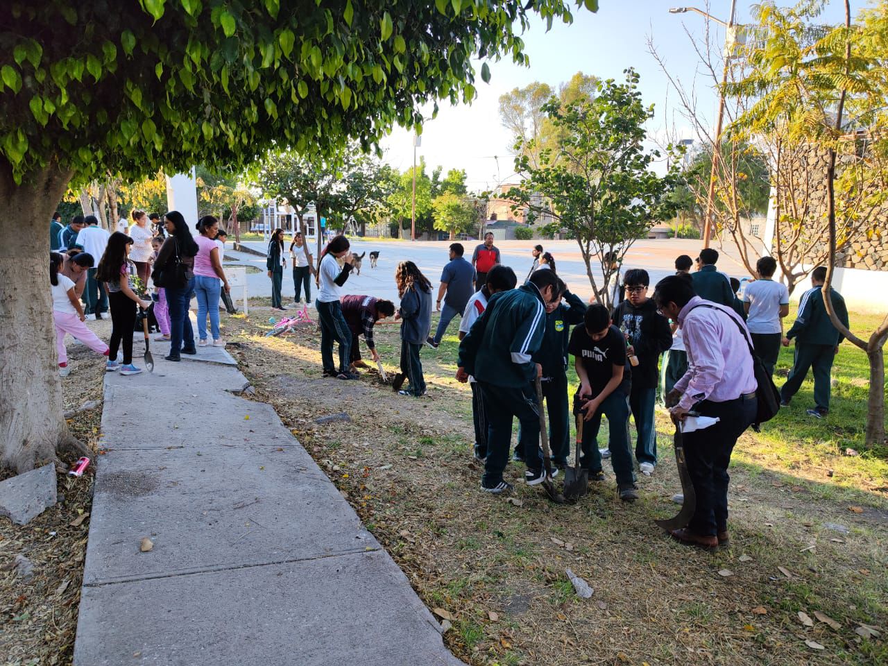 Alumnos de la Escuela General Alfonso Reyes, junto con vecinos del fraccionamiento, se sumaron a la actividad, plantando un total de 40 árboles en diversas áreas del espacio público.