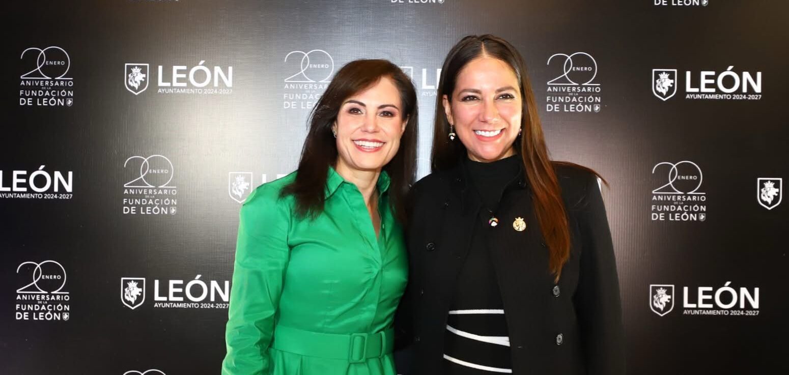 Alejandra Gutiérrez y Libia Dennise, celebran el 449 aniversario de León en una marcada ceremonia a San Sebastián, santo patrono del municipio.