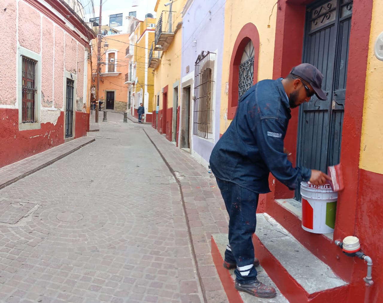 El área de Mantenimiento del Gobierno Municipal de Guanajuato realizó trabajos de preservación del paisaje urbano y pintura en el callejón de Calixto.