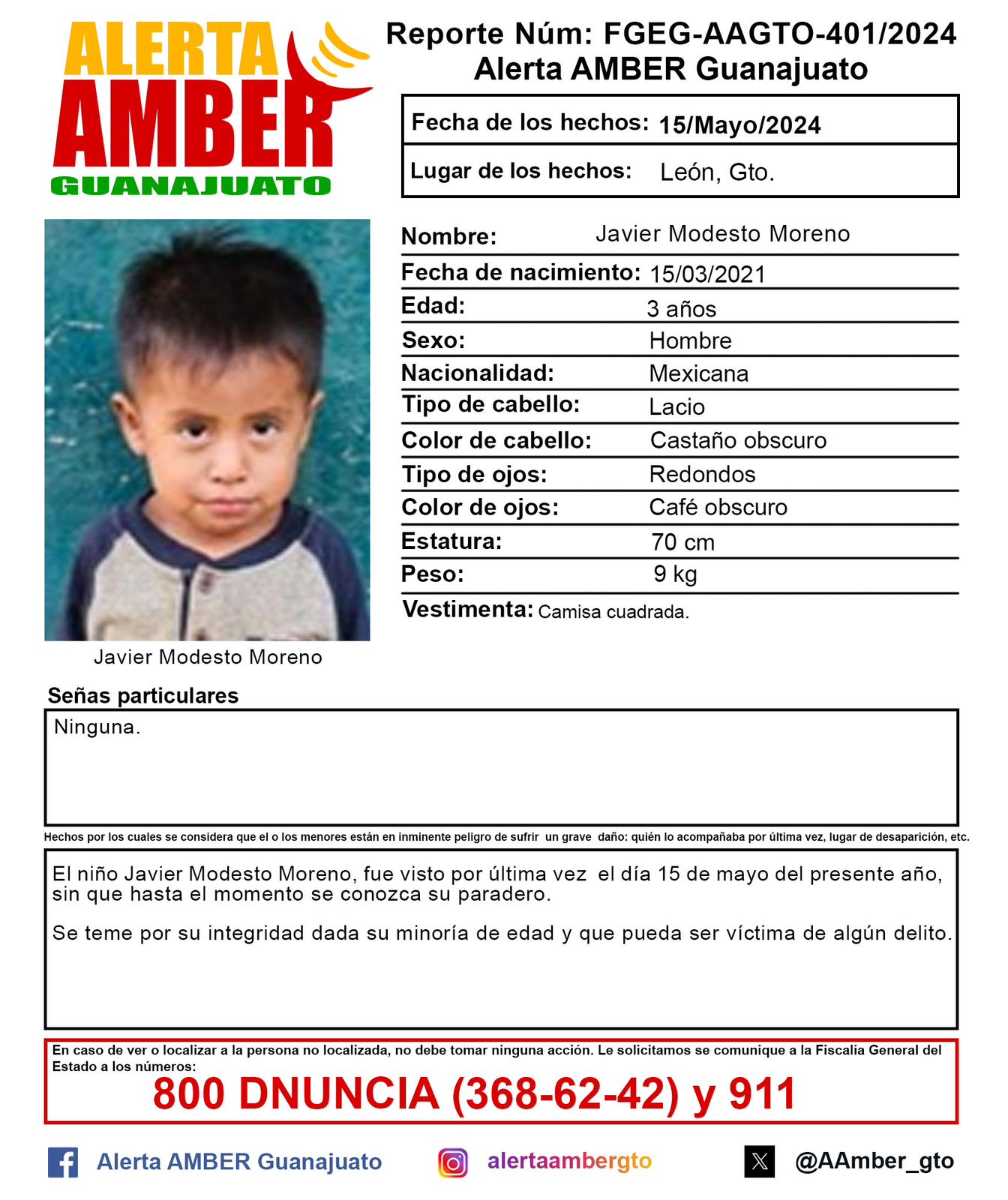 Se ampliará la búsqueda de Javier Modesto, menor de tres años de edad, que desapareció desde el pasado quince de mayo, los trabajos de búsqueda en vida se harán también en los municipios de Silao y Romita.