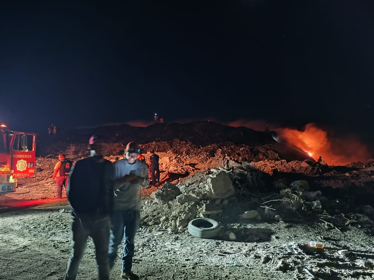 Bomberos y dependencias municipales trabajaron en buscar apagar el incendio que una vez más fue provocado en el relleno sanitario de Purísima del Rincón.