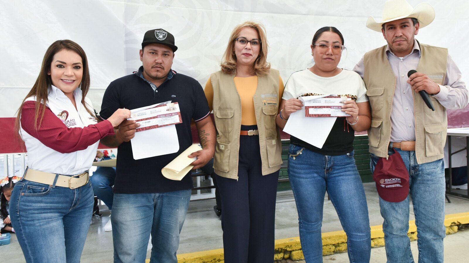 Cinthia Teniente informó que comenzó la entrega de las tarjetas de la Beca Rita Cetina a los registrados, y a quienes no pudieron hacerlo se les entregará un formato para recibir la tarjeta más tarde.