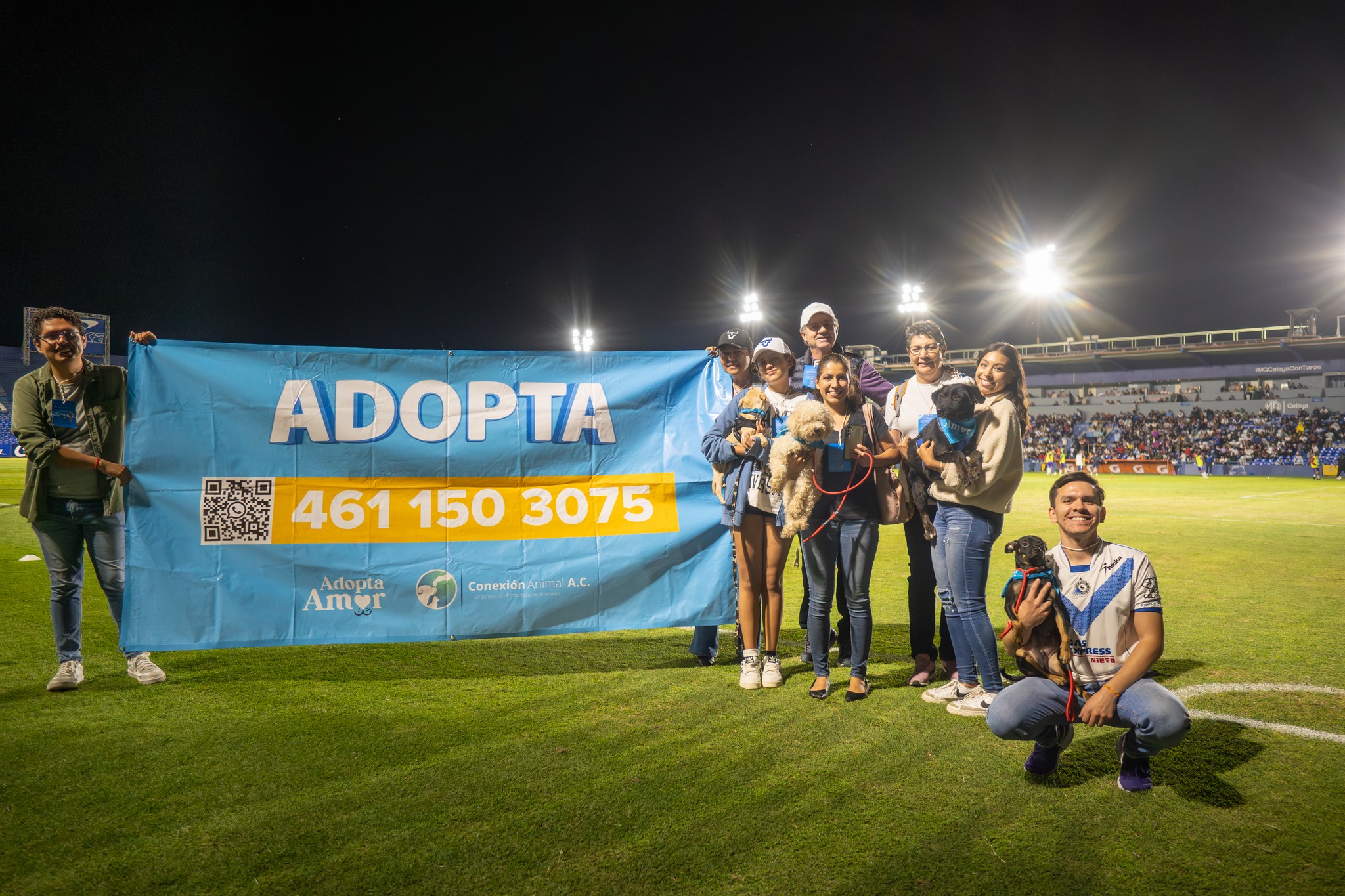 Durante cuatro partidos se han presentado a 56 perros para que las personas y la afición los conozcan y se animen a adoptarlos