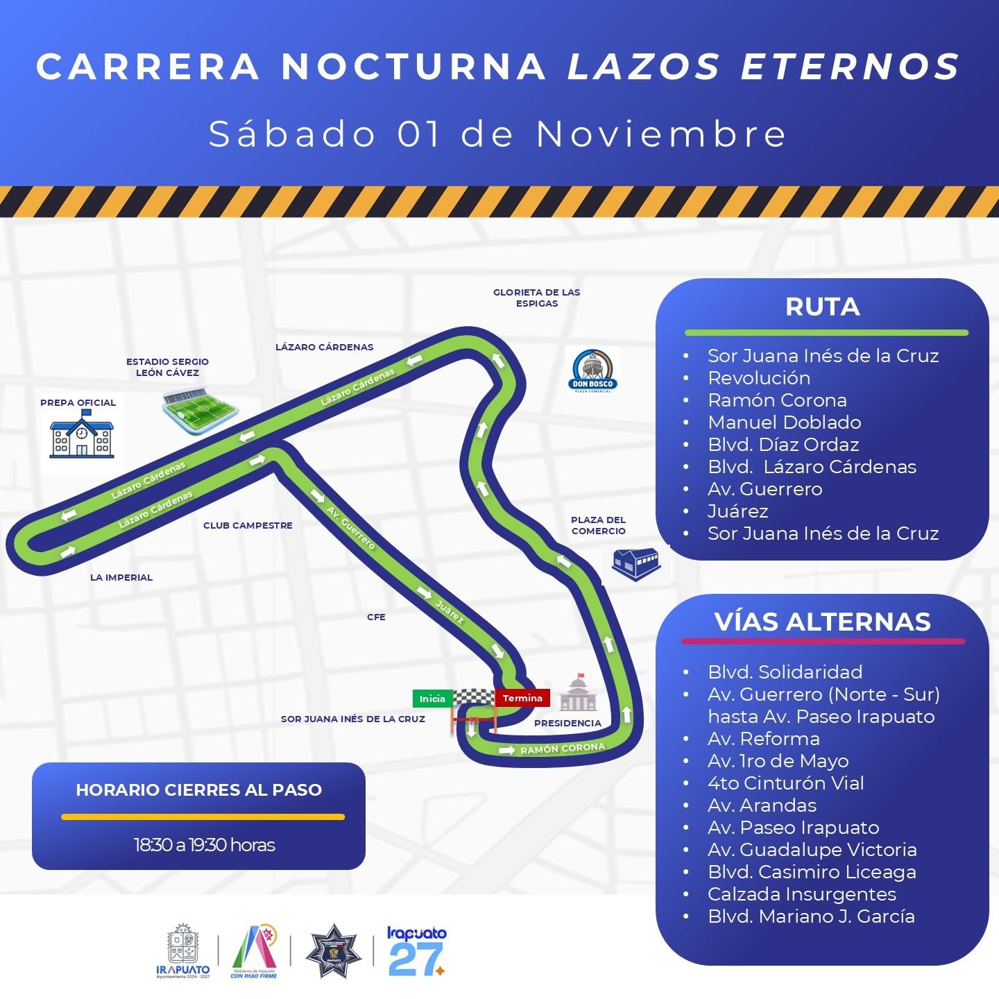 Irapuato celebrará la Carrera Nocturna “Lazos eternos” el 1 de noviembre, con rutas de 1, 5 y 7 km e inclusión para personas con discapacidad.