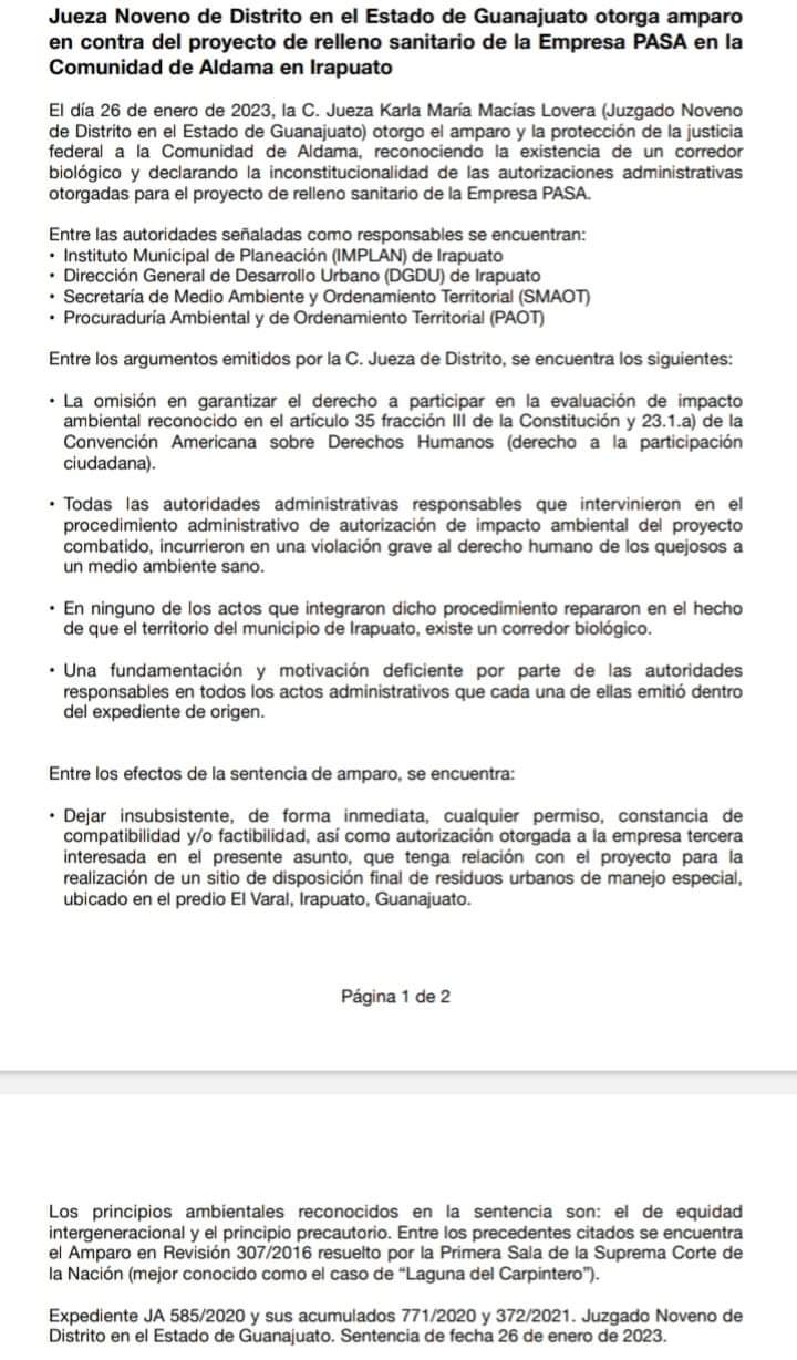 Conceden amparo para impedir construcción de relleno sanitario