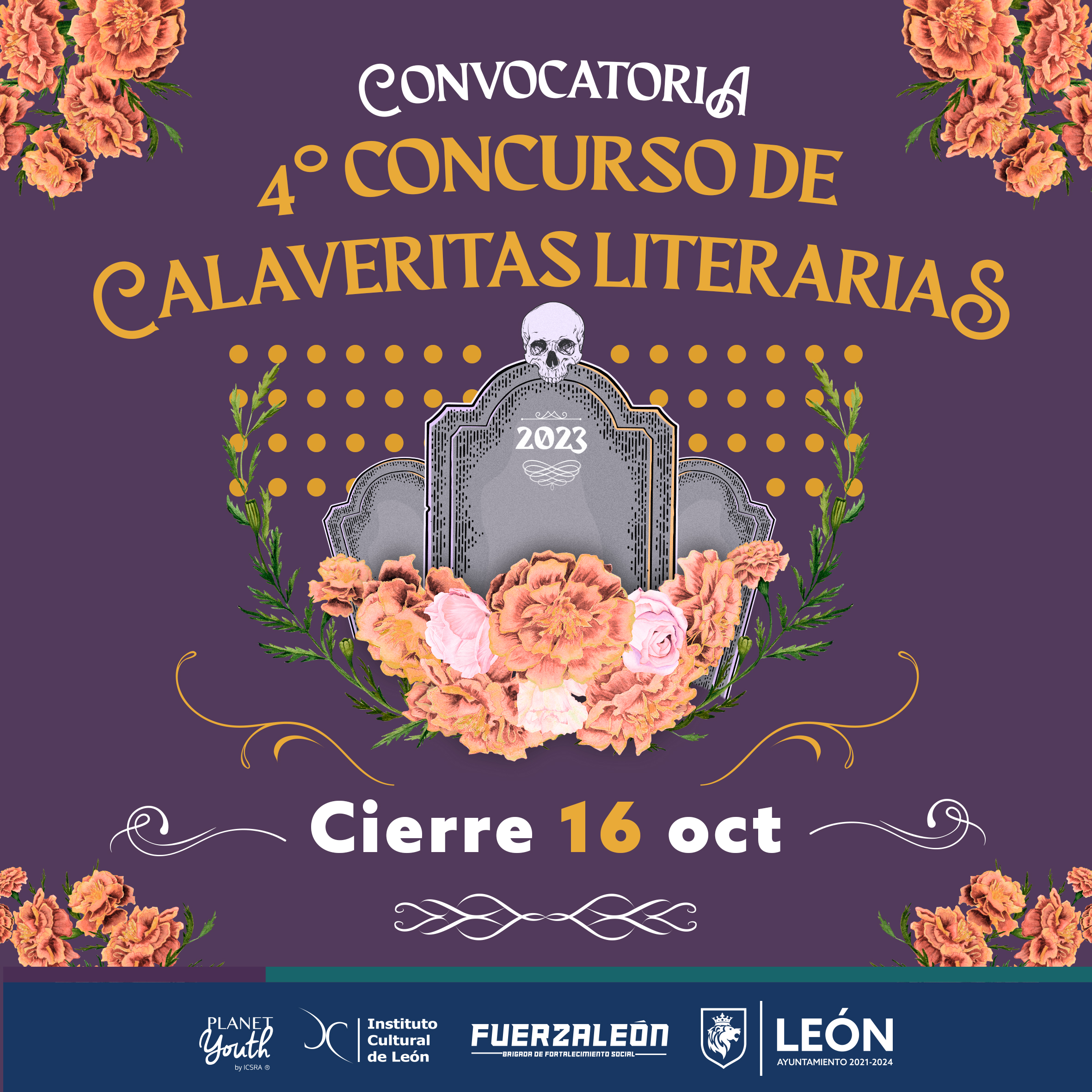 En el marco del Festival de la Muerte 2023, el Instituto Cultural de León lanza la convocatoria del 4° Concurso de Calaveritas Literarias.