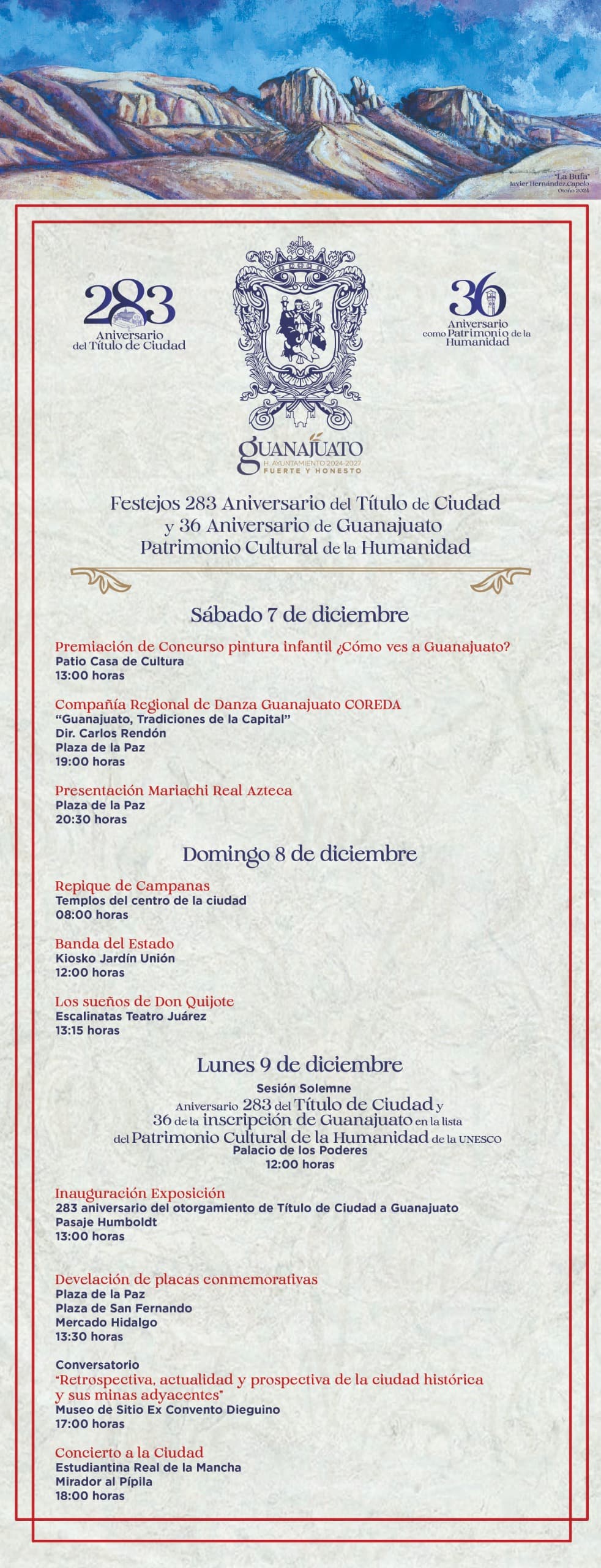 El Gobierno Municipal de Guanajuato invita a la ciudadanía a participar en los eventos conmemorativos por el aniversario 283 del Título de Ciudad.