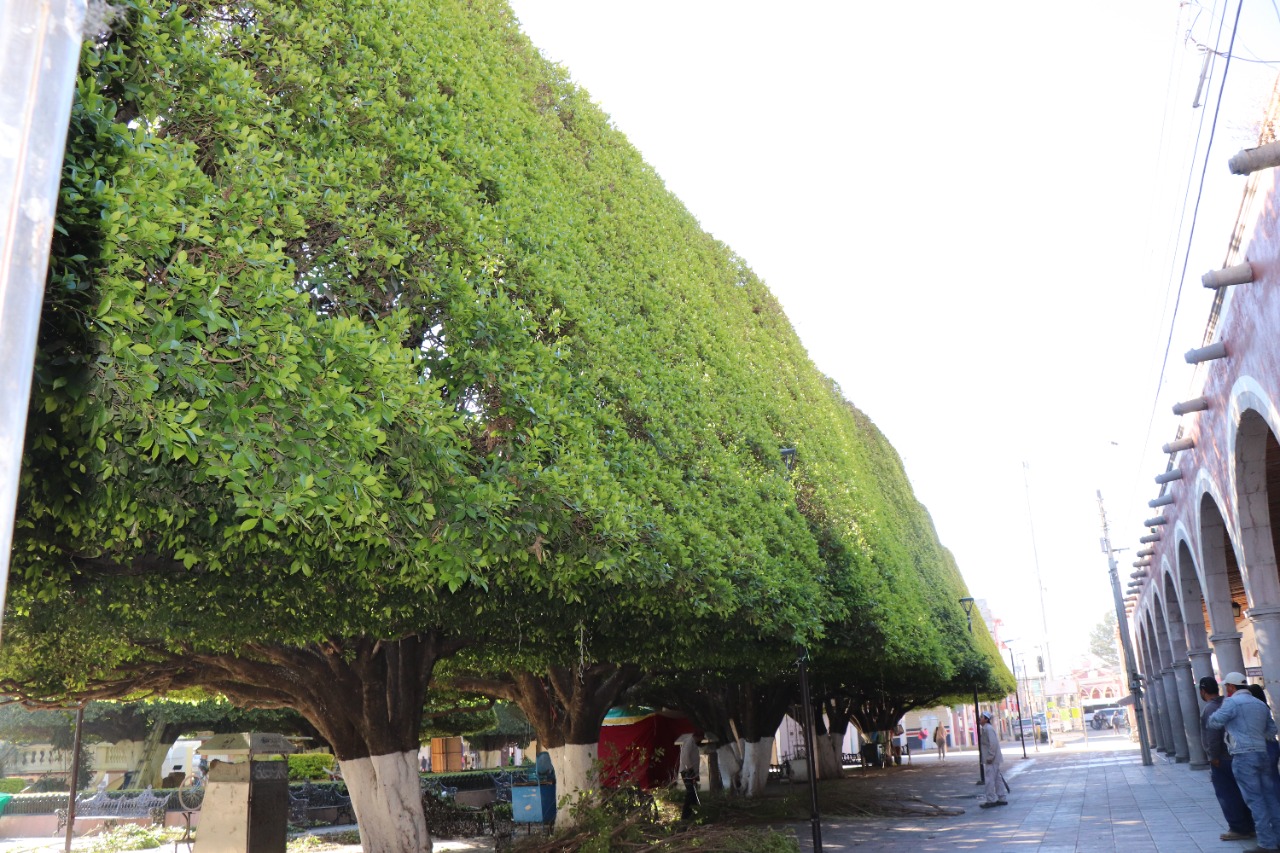 Se podaron las ramas que sobresalían de los árboles, dando con ello una imagen estética y de limpieza a esta plaza.