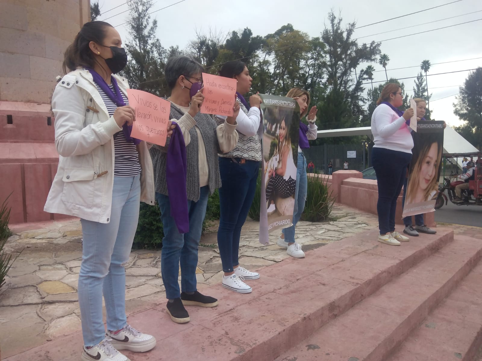 Familiares de las hermanas Daniela y Viviana Márquez Pichardo, se manifestaron en el monumento a la bandera.