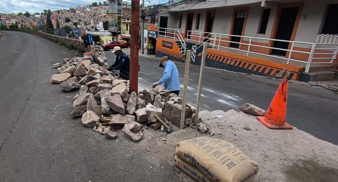 Rehabilitan muro de contención en el camino a las Momias