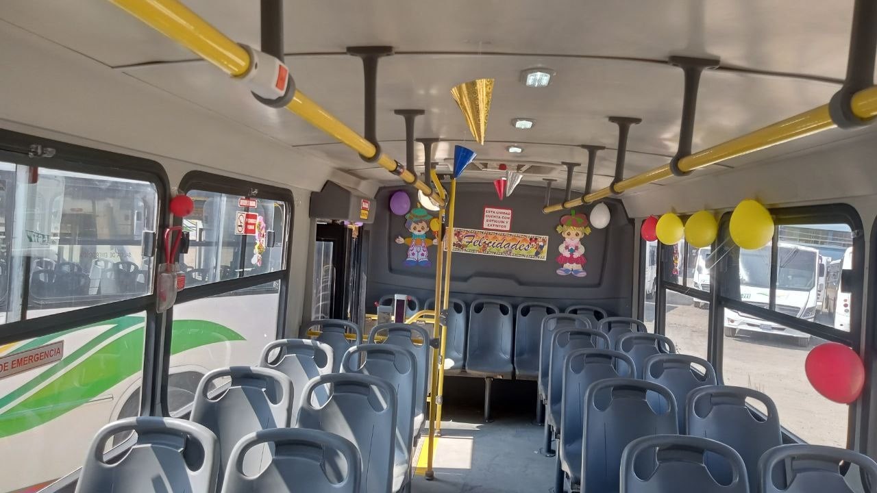 Gerardo, chofer de la ruta 80 en Villas de San Nicolás, sorprendió nuevamente a sus pasajeros el Día del Niño con su tradicional decoración festiva.