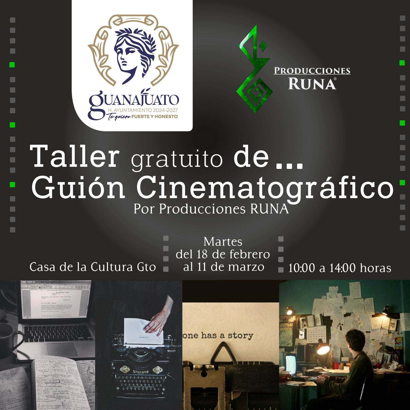 La Dirección General de Cultura y Educación de Guanajuato Capital invita al taller gratuito de Guión Cinematográfico, que inicia el 18 de febrero en la Casa de la Cultura.