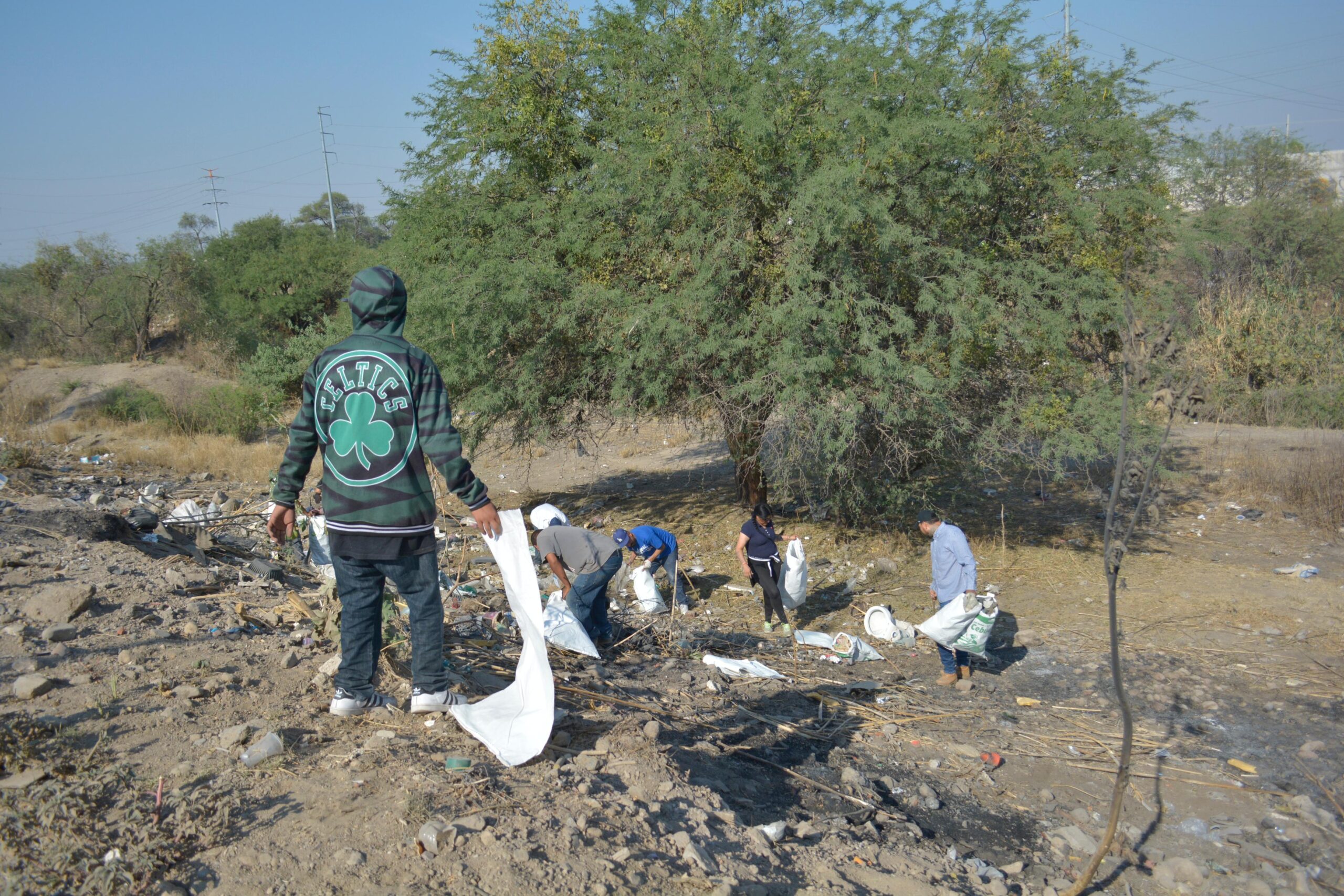 Jóvenes de centros de rehabilitación limpian el Río Silao.