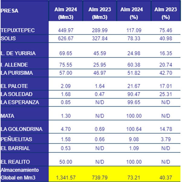 Promedian principales presas de Guanajuato 73.2 por ciento de almacenamiento