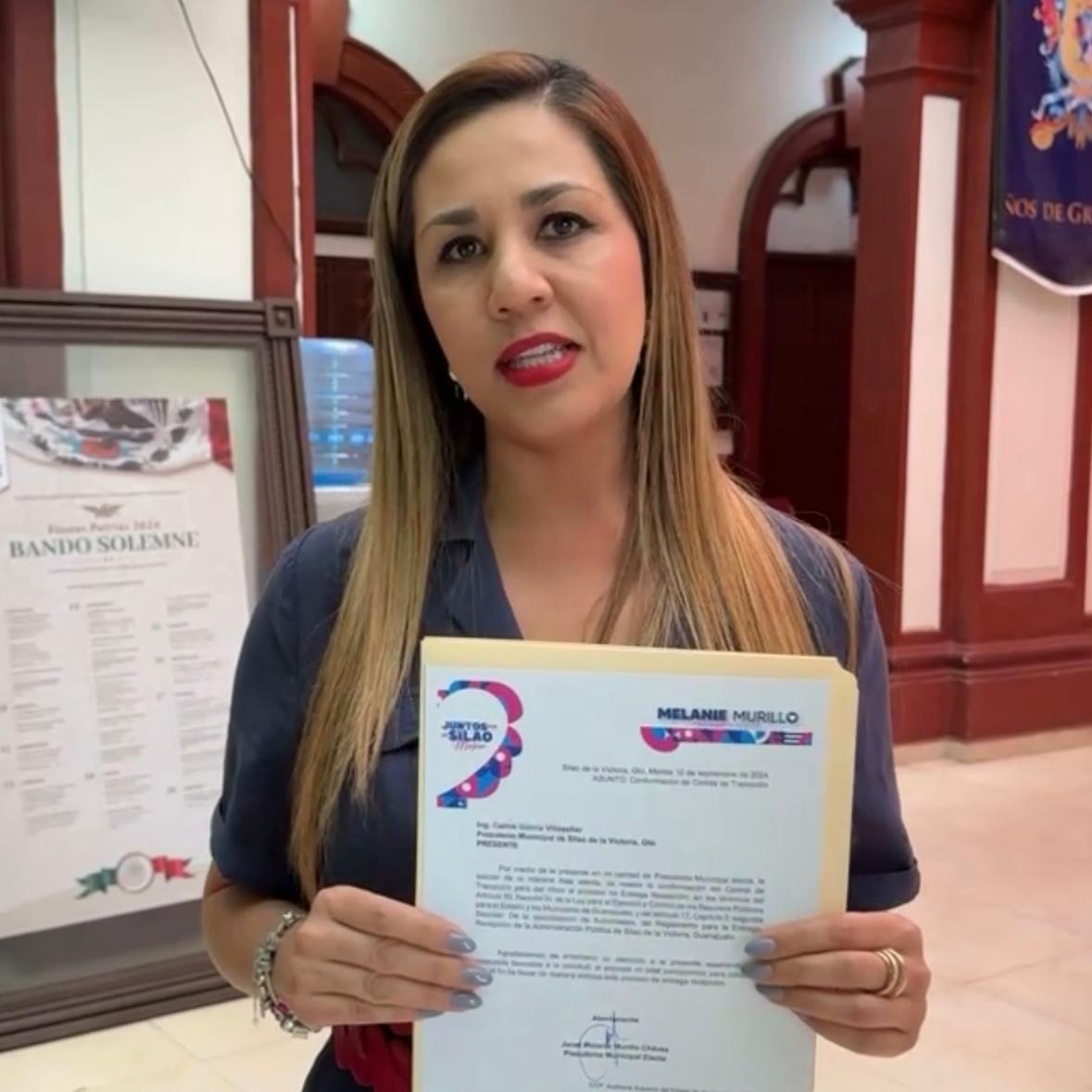 Melanie Murillo, entregó el oficio-solicitud para integrar el comité de transición e iniciar los trabajos de entrega-recepción.