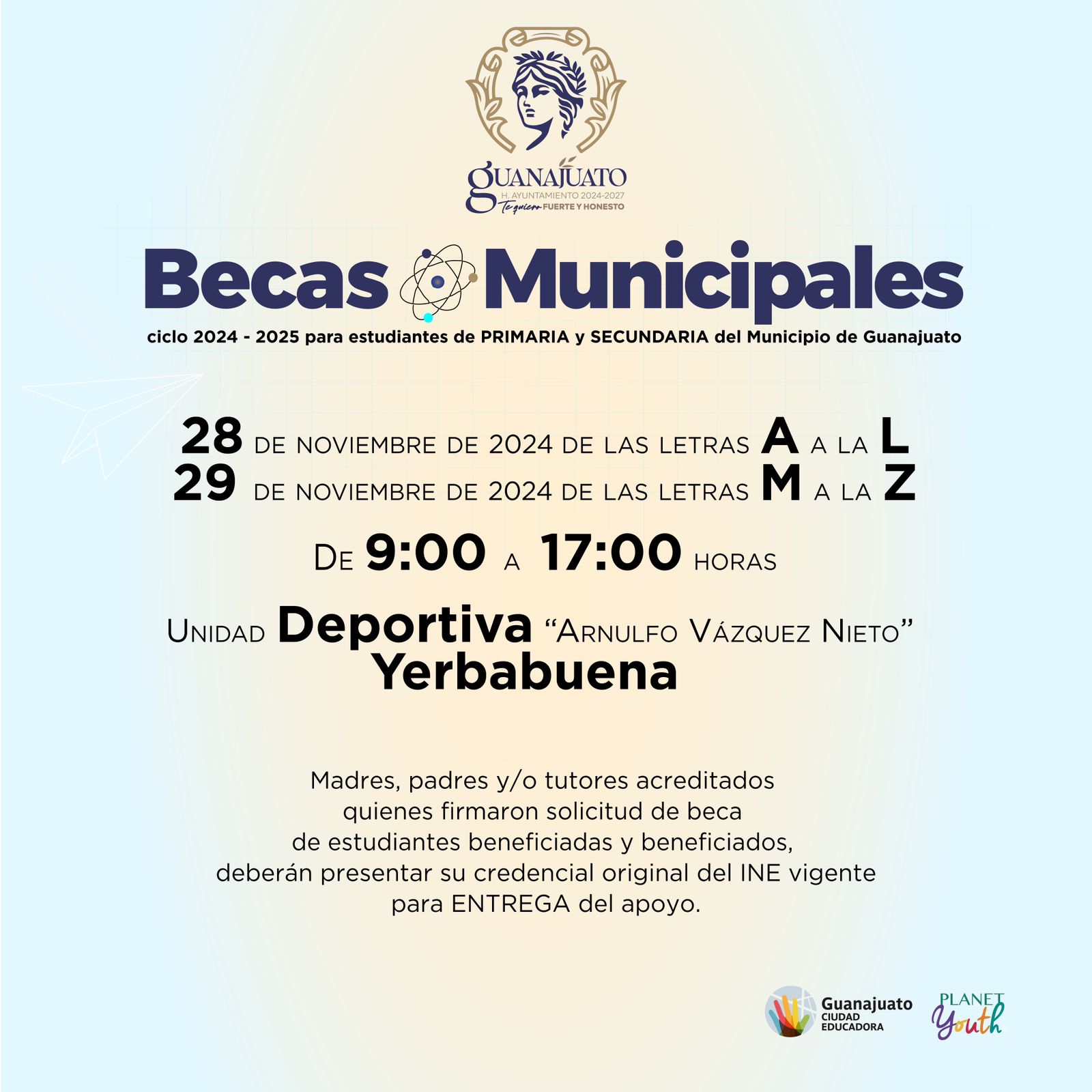 A través de la Dirección General de Cultura y Educación, llevará a cabo la entrega de becas para estudiantes de educación básica los días 28 y 29 de noviembre.