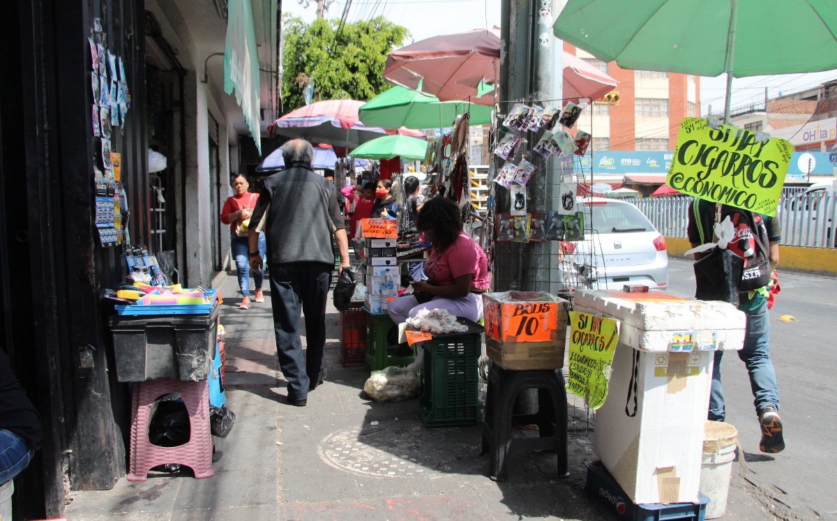 Ciudadanos no pueden caminar en las banquetas invadidas de la Miguel Alemán y es que el comercio ambulante, es algo que no han podido controlar las autoridades.