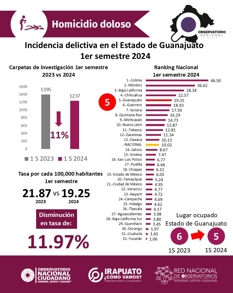 El director del Observatorio Ciudadano Irapuato ¿Cómo vamos?, informó que, en comparación al primer semestre del año pasado, en el mismo periodo, pero de este año, en la región se incrementó la incidencia de este delito.