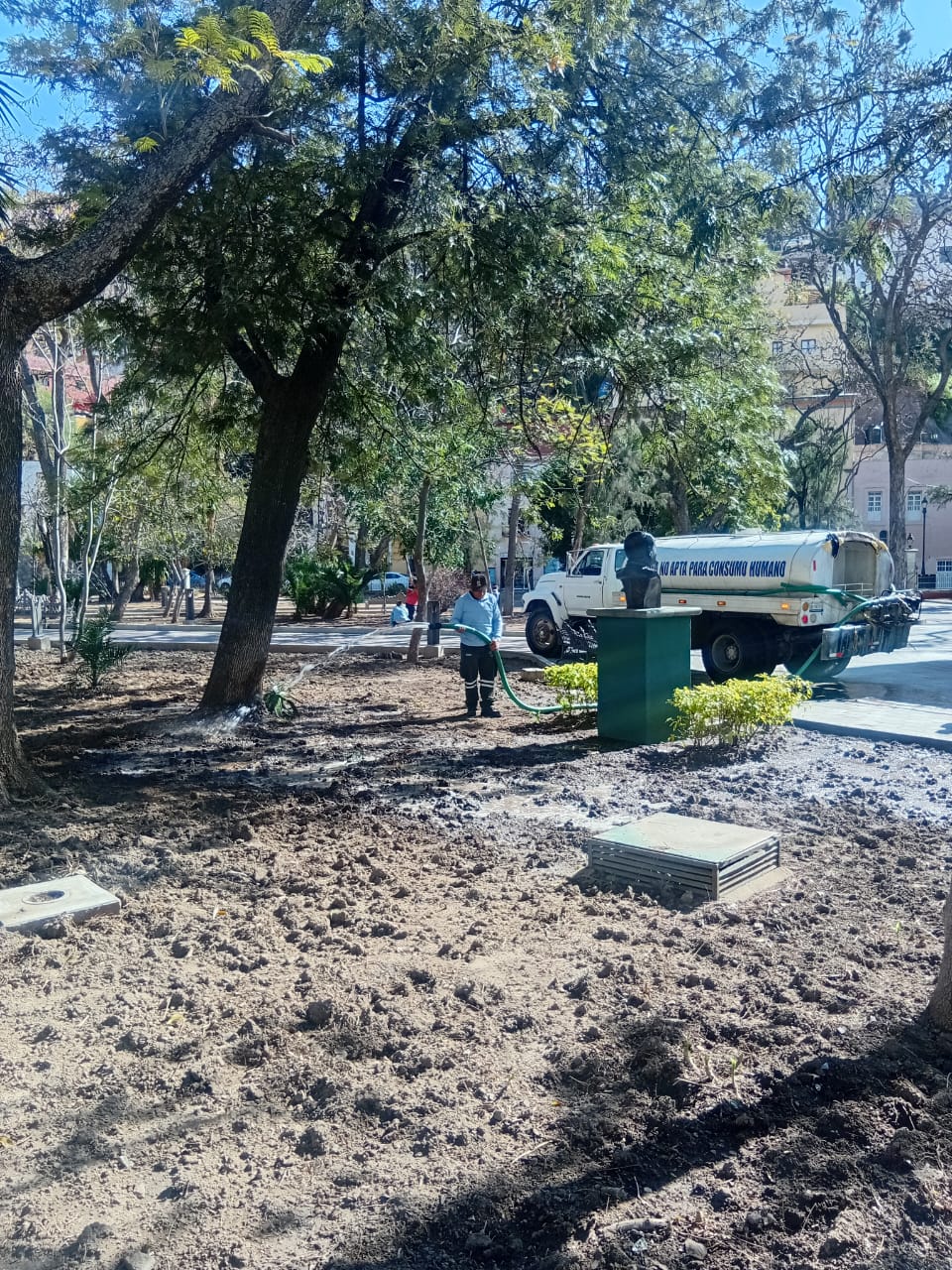 Realizan mantenimiento anual en el Jardín del Cantador para preservar la salud y esplendor de las azucenas.