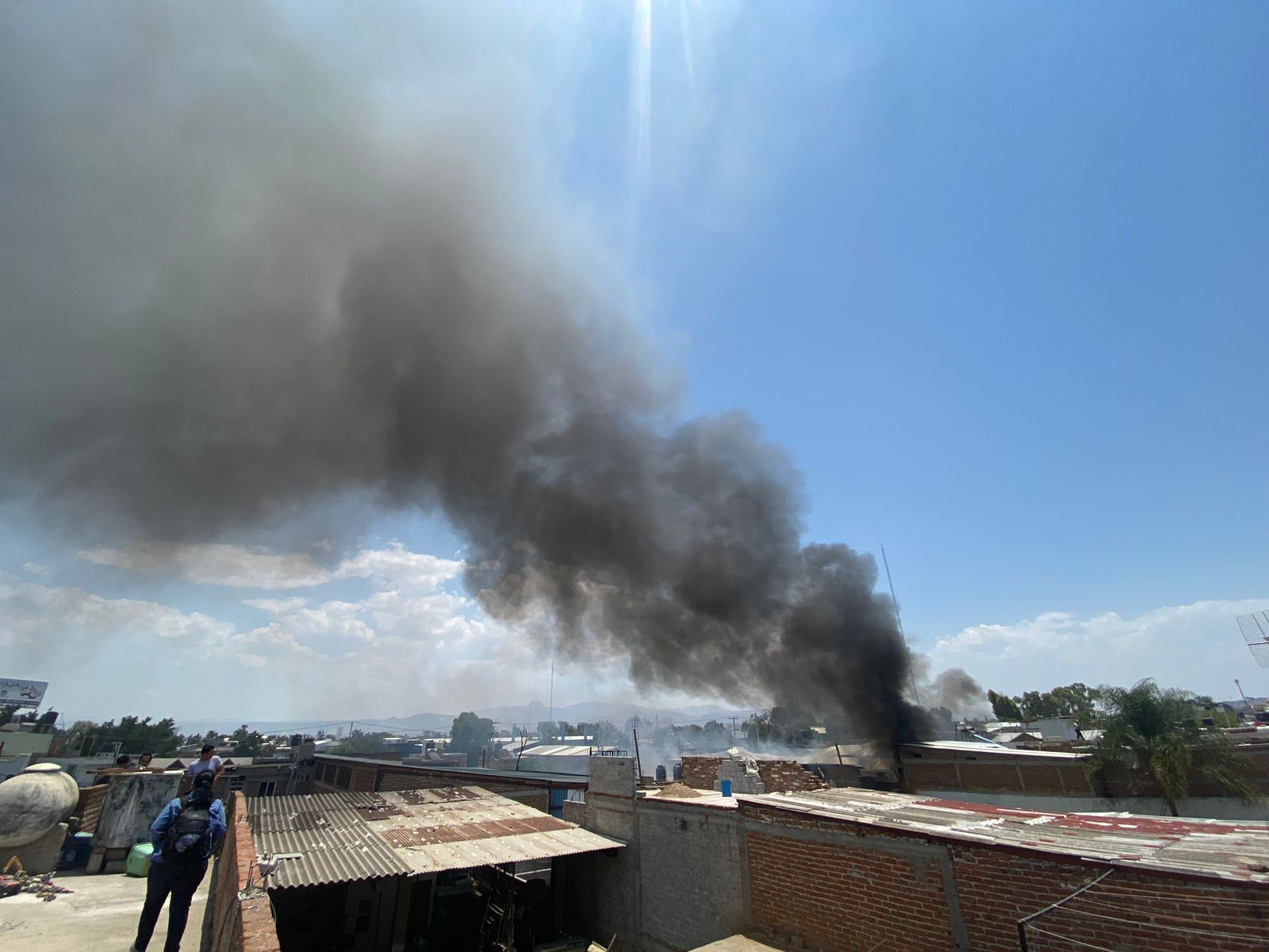 Una columna de humo color negro se vió desde diferentes puntos de la ciudad. El cuerpo de bomberos y elementos de protección civil llegaron para sofocar el incendio.