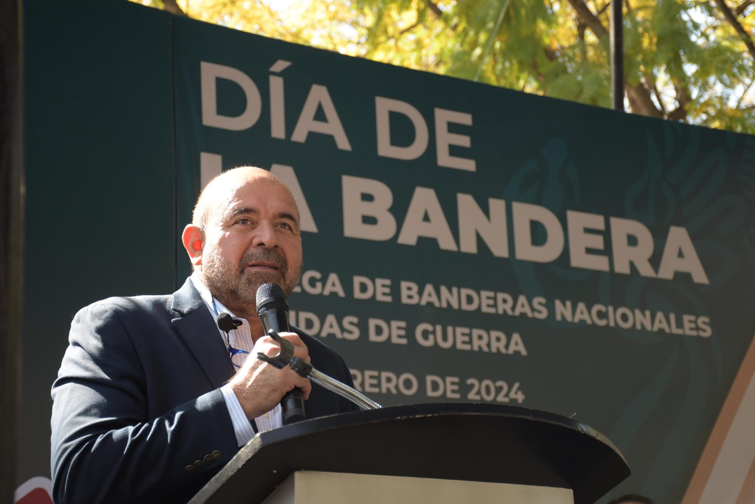 En marco de la conmemoración del Día de la Bandera nacional, alumnos de 17 planteles educativos reciben instrumentos para bandas de guerra y abanderados escoltas