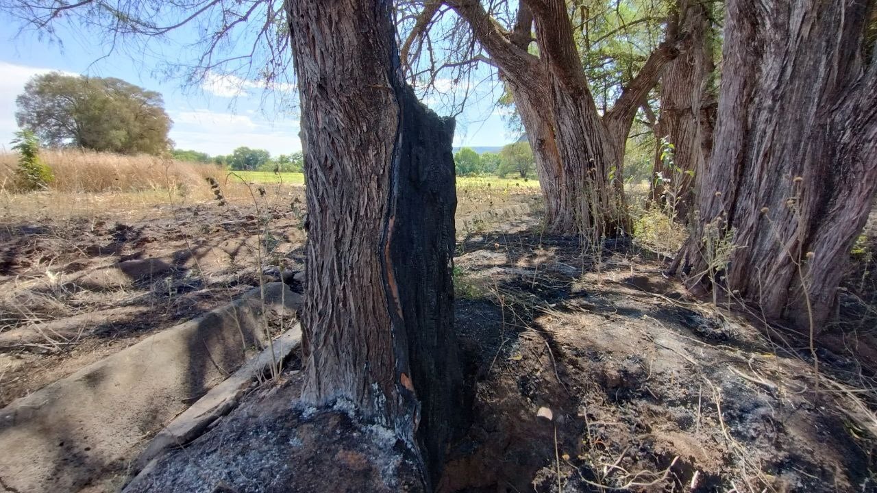 Decenas de sabinos de comunidades del municipio de Manuel Doblado fueron incendiados, dañando y consumiendo parte de los troncos de varios de ellos.