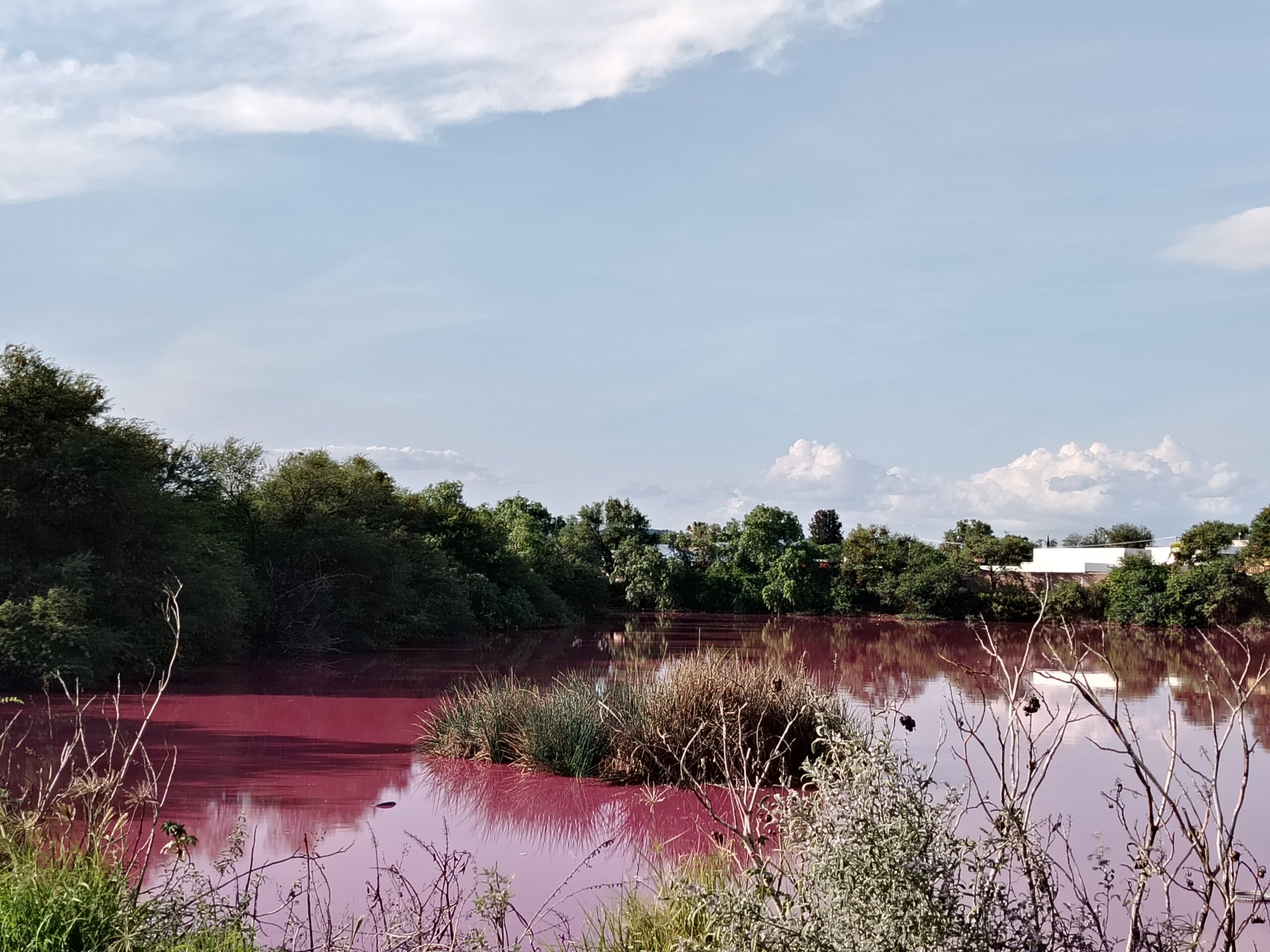 El origen del agua rosa, en un bordo que se ubica en la comunidad de Puerta de San German, ya está siendo investigado.
