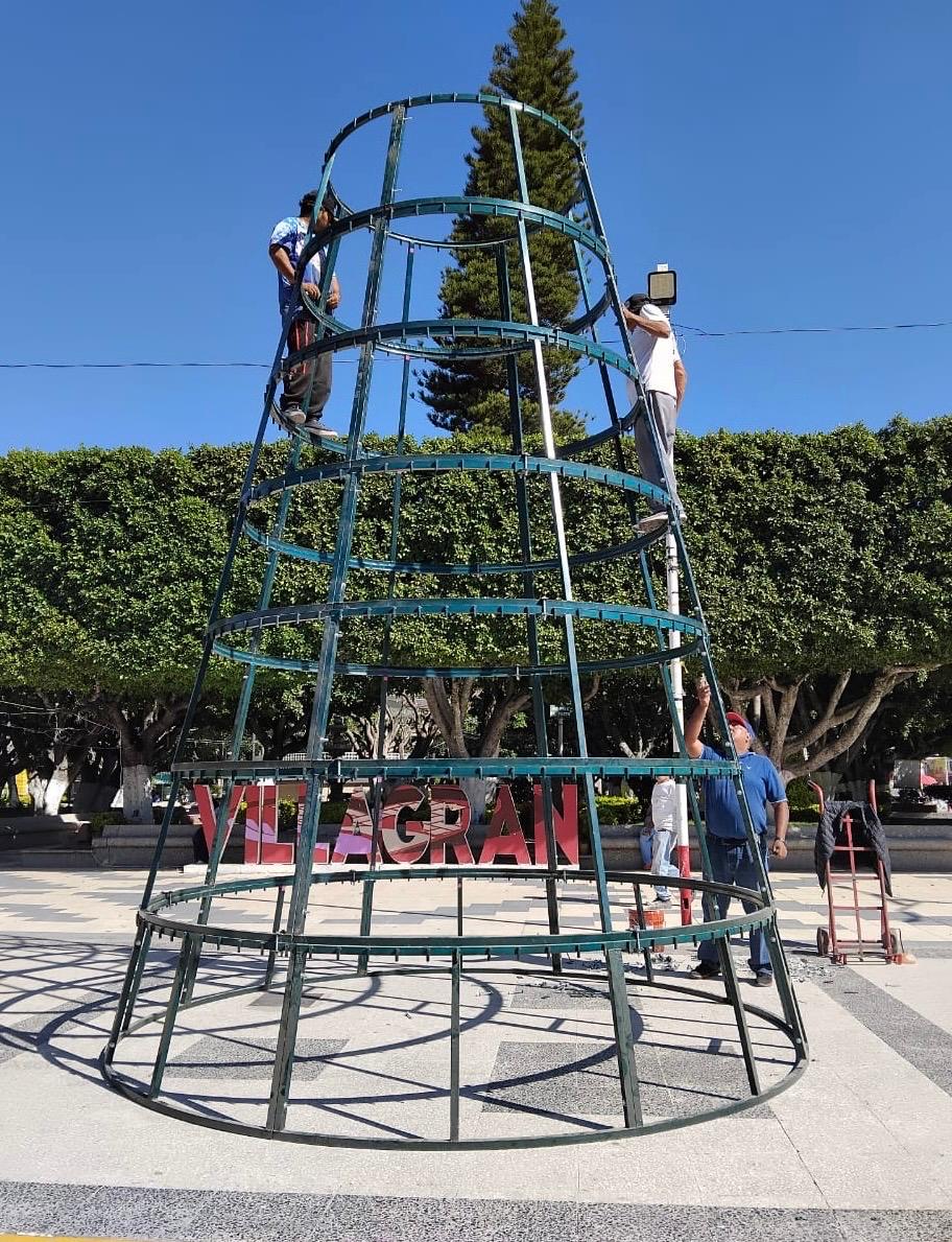 El árbol que será terminado de armar y adornado en esta semana, se pretende que lo encienda en una ceremonia especial ante la presencia de los villagranenses, la alcaldesa Cinthia Teniente, el día 6 de diciembre.