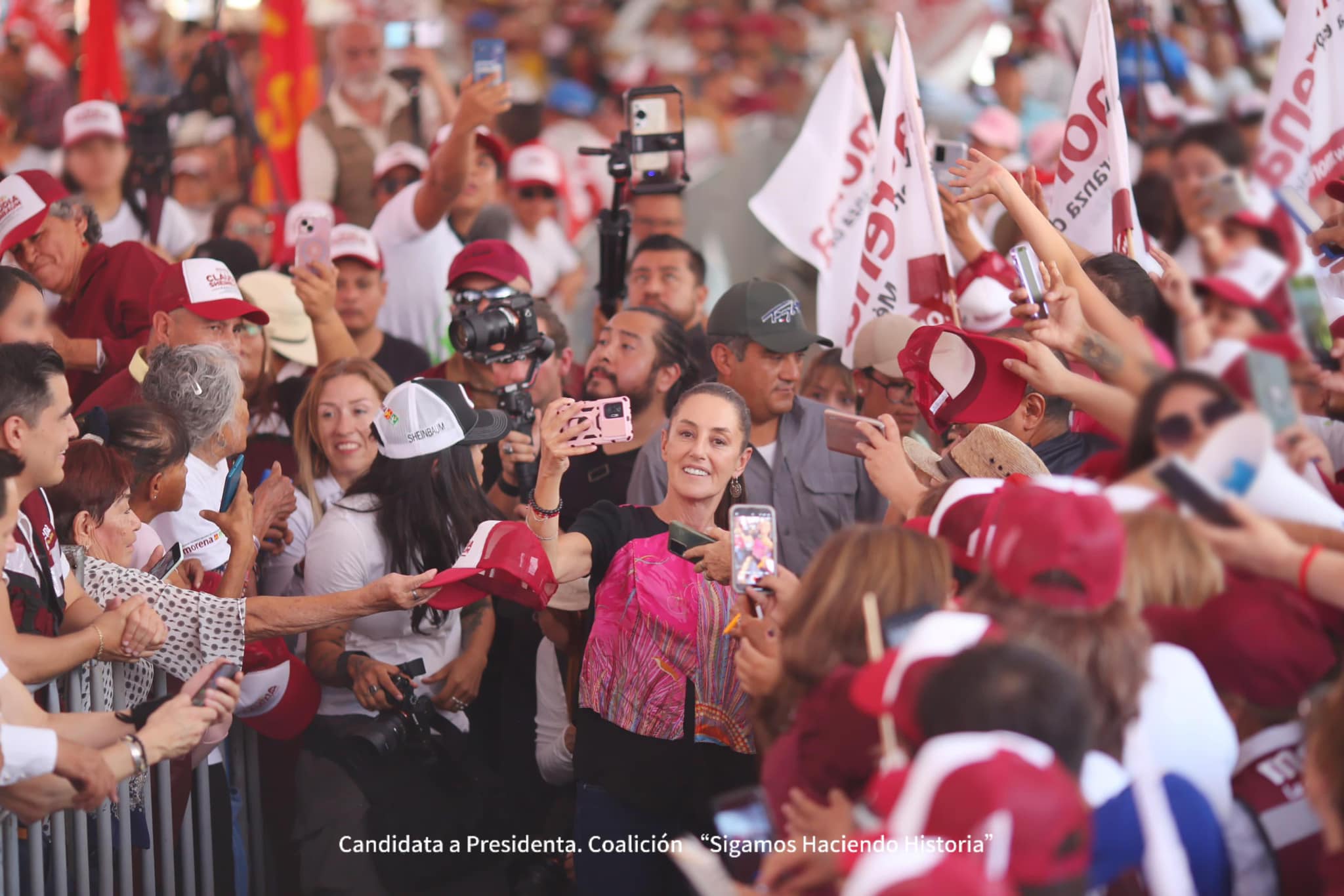 La candidata se comprometió a que en caso de ser electa como la primera presidenta de México mantendrá los principios que ha abanderado Morena como el no defraudar al pueblo.