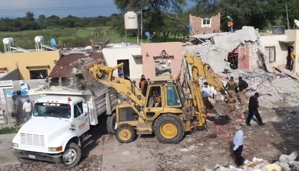 Apoya JUMAPAC con trabajos de demolición de viviendas afectadas por explosión en Cortazar.
