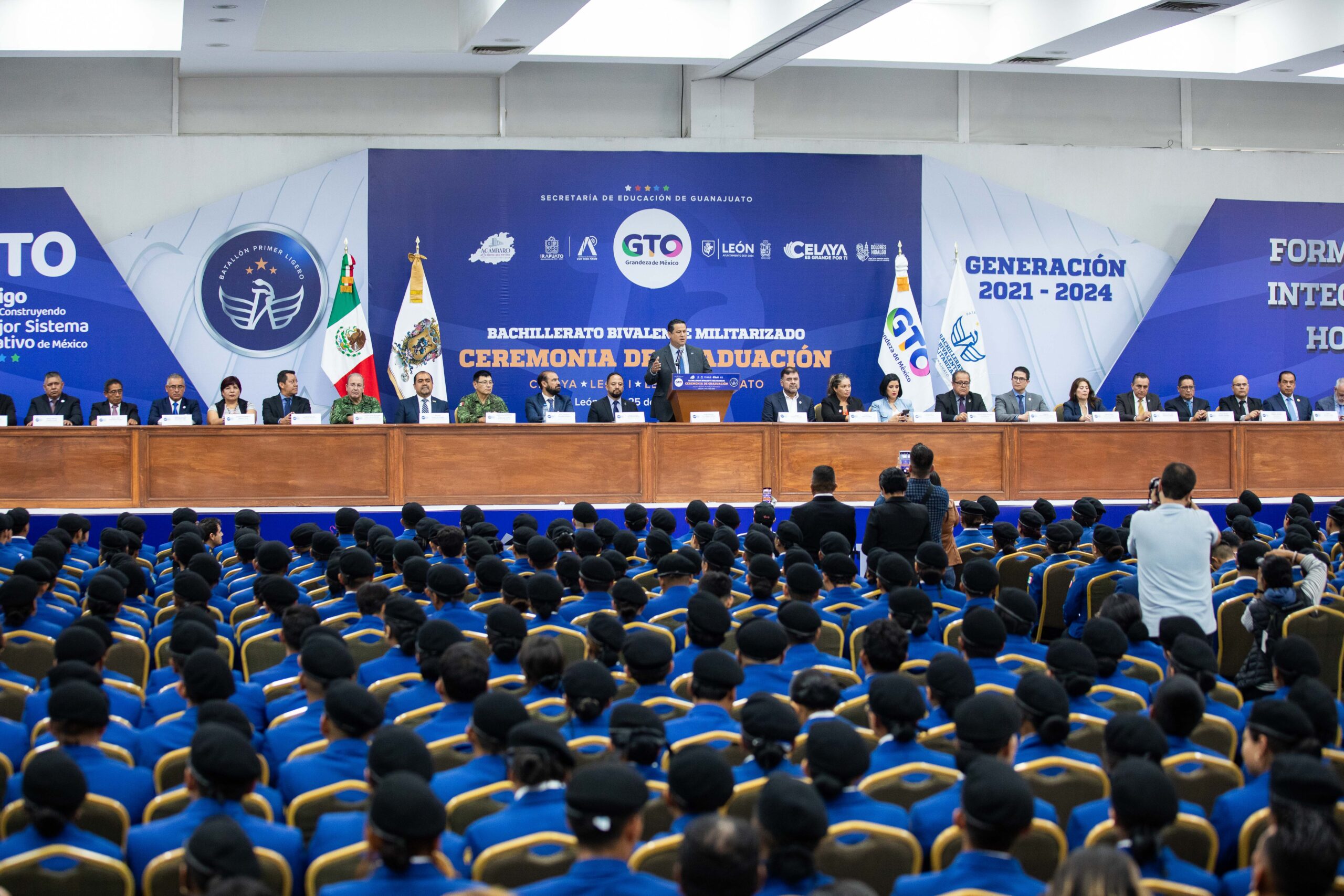 Diego Sinhue Rodríguez Vallejo, presidió la ceremonia de graduación del Bachillerato Bivalente Militarizado “Batallón Primer Ligero”, generación 2021-2024.